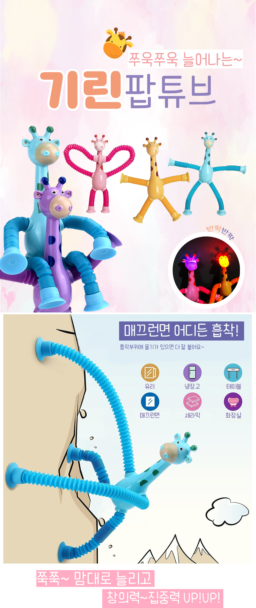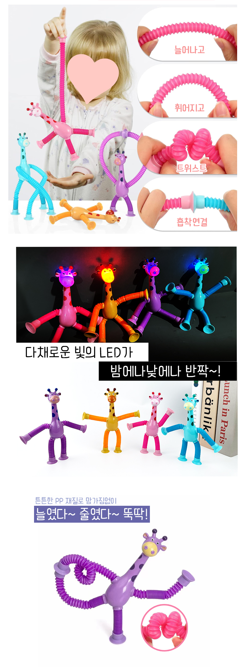 LED 기린 팝튜브 파이프 호스 장난감 팝잇 푸쉬팝