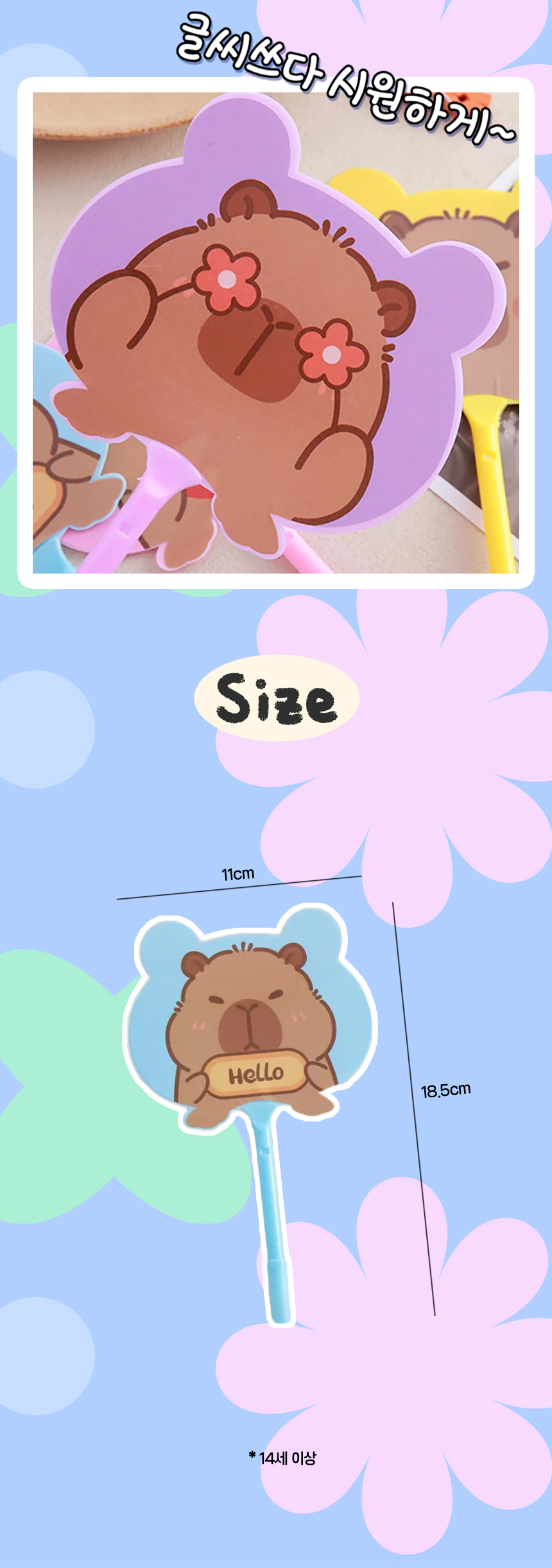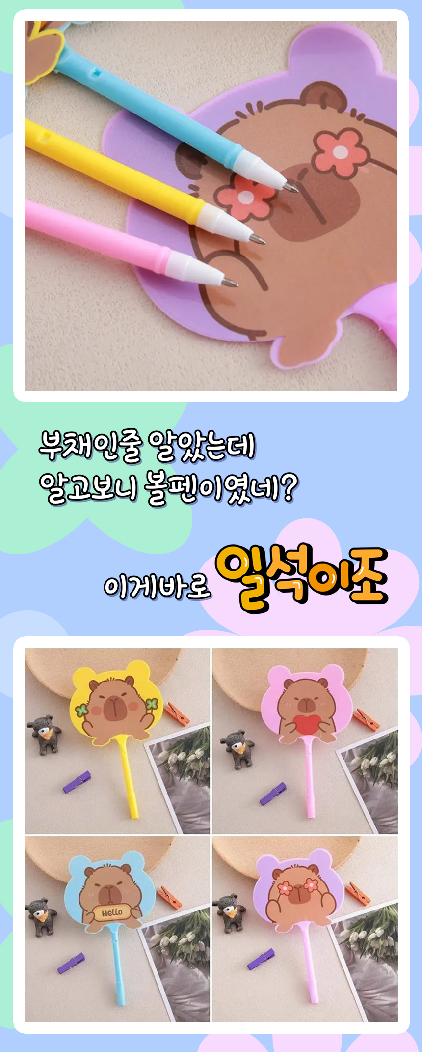> 카피바라 볼펜 부채 휴대용 단체선물 미니 손부채 판촉