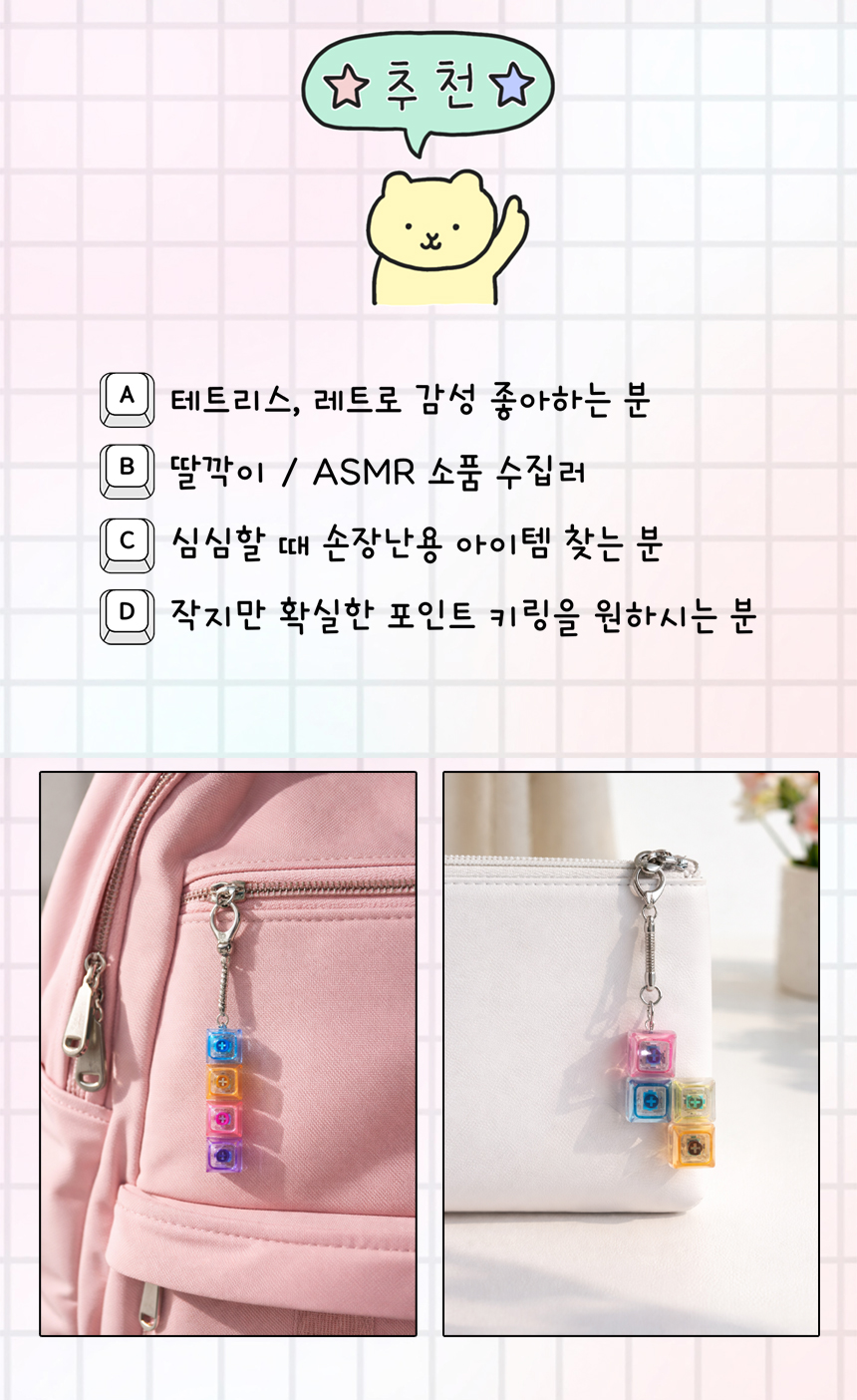샤이니 테트리스 딸깍이 키링 키캡 클릭커 ALL LED 키보드 라이트
