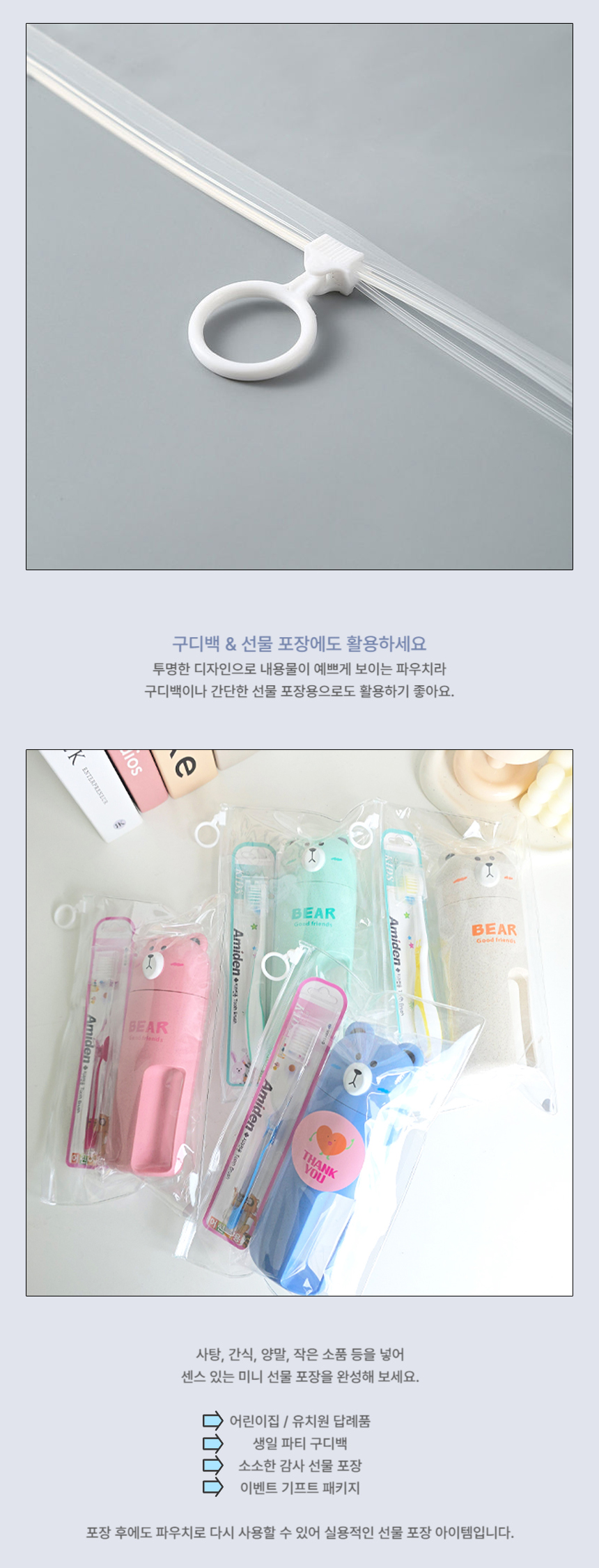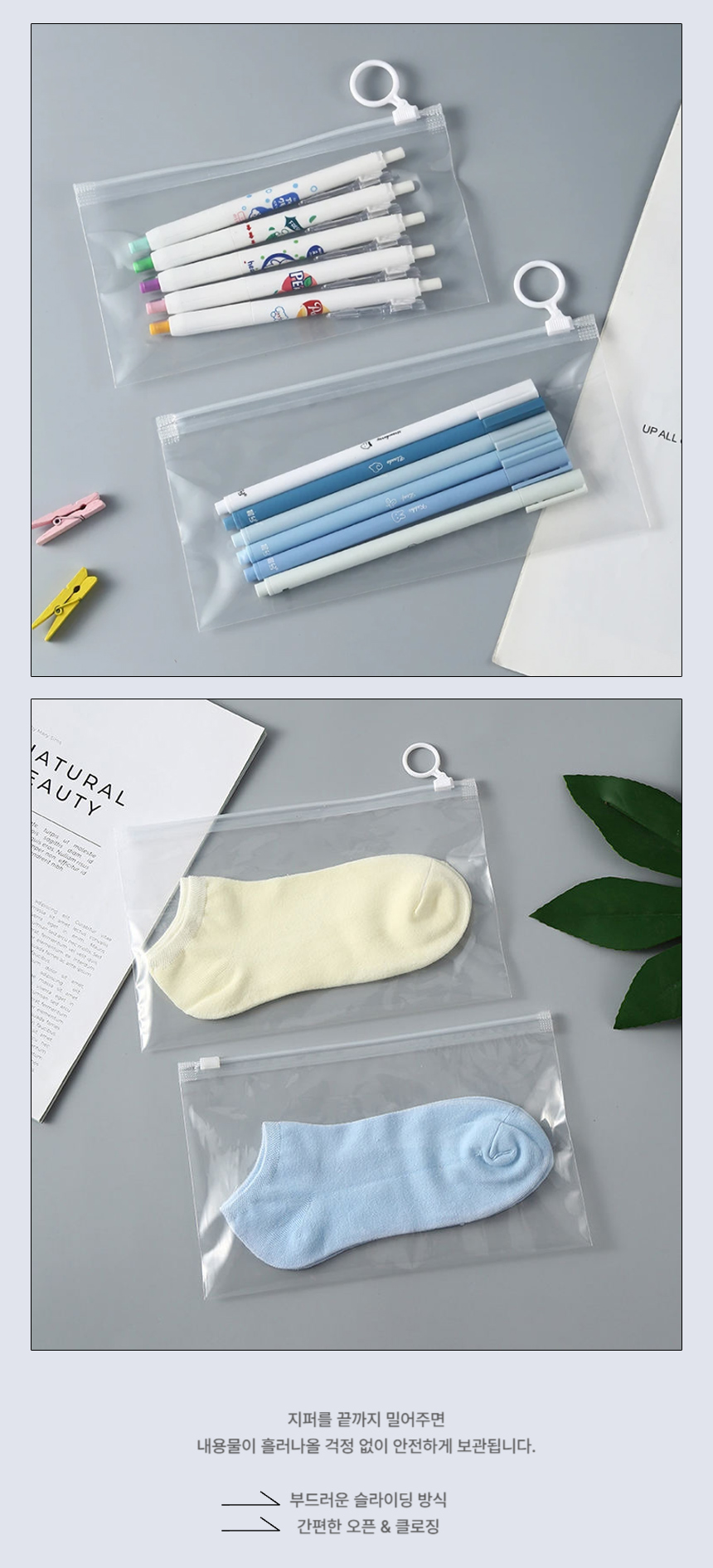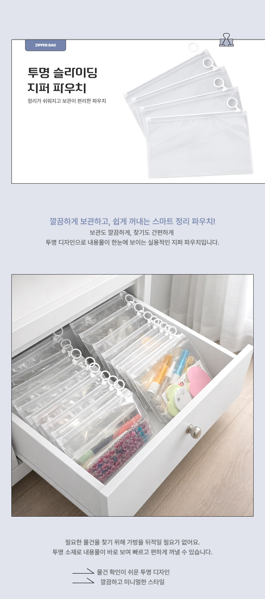 > 투명 슬라이딩 지퍼백 휴대용 화장품 파우치 여행용 소분용 비닐팩