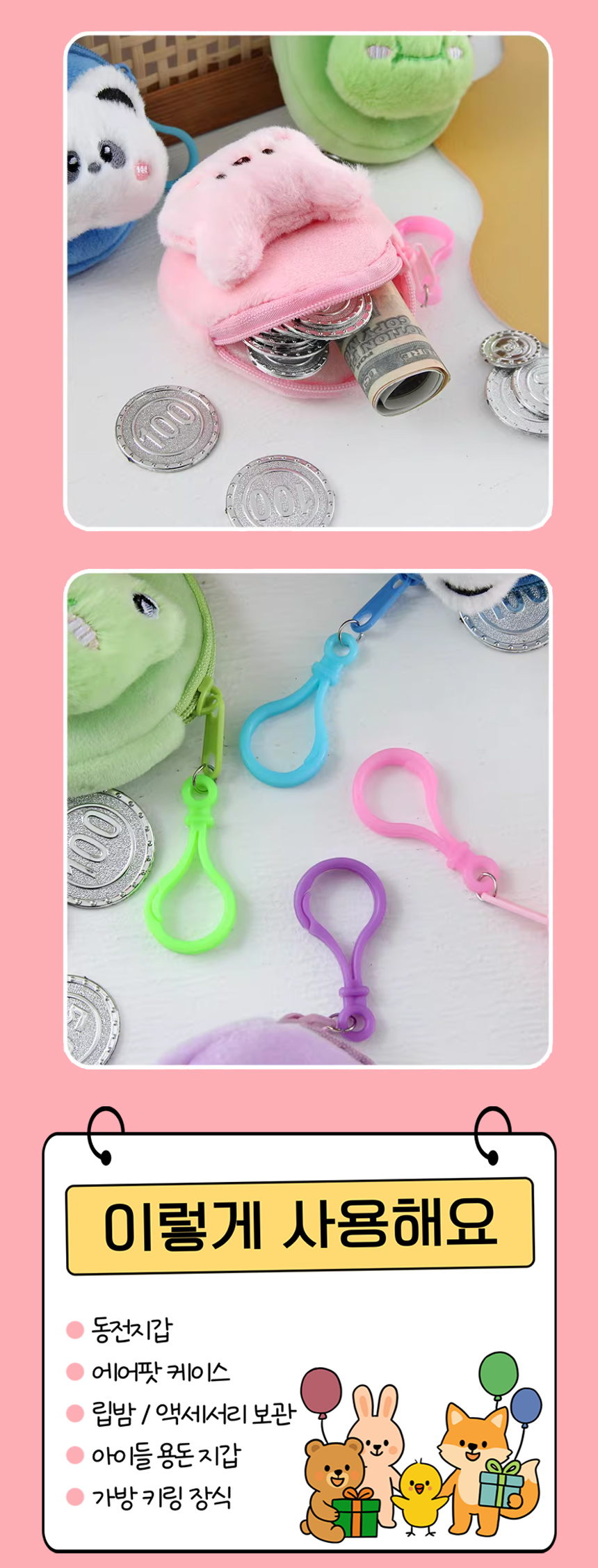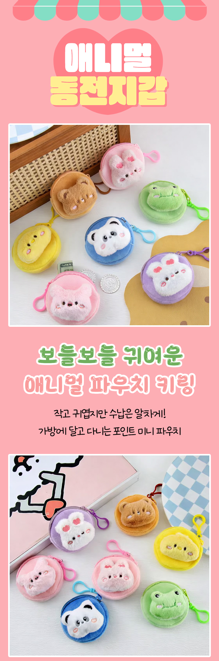 > 뉴 애니멀 동전지갑 키링 귀여운 미니 엔화 여행용 코인 파우치