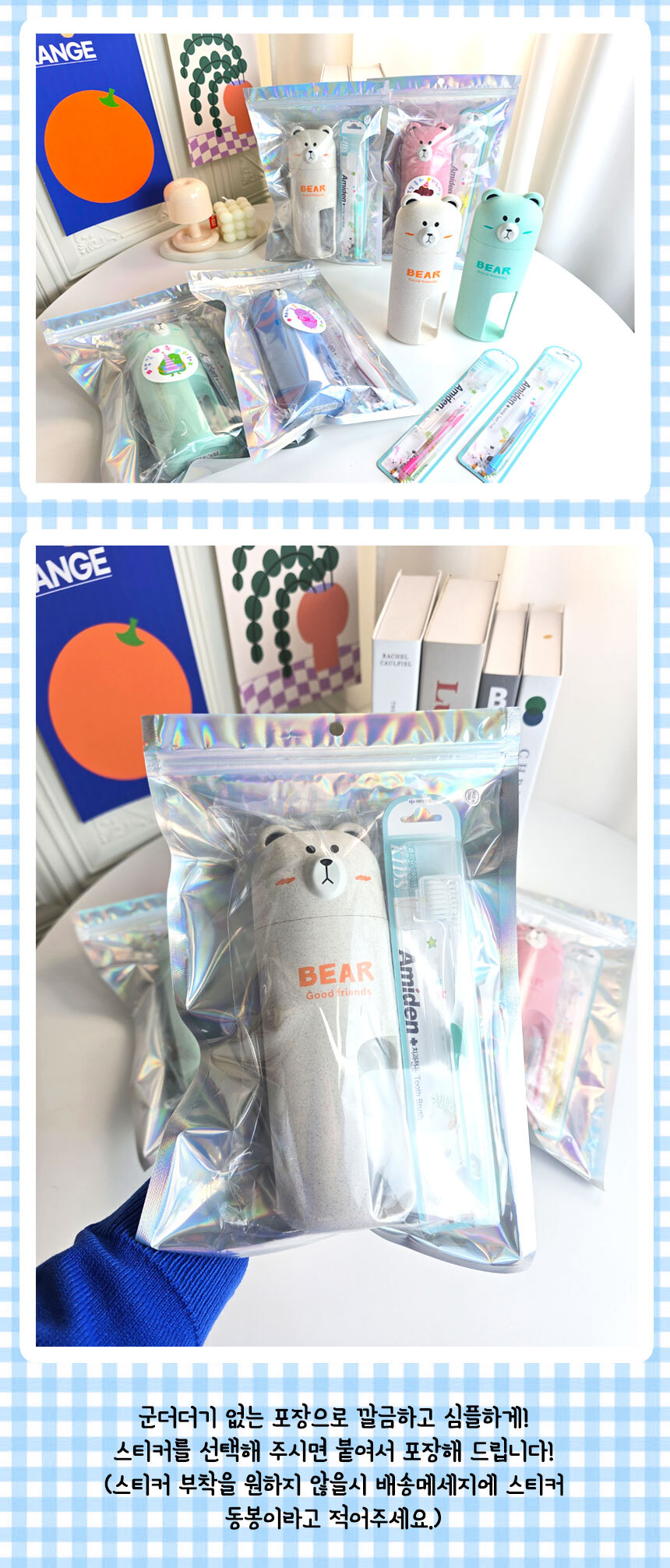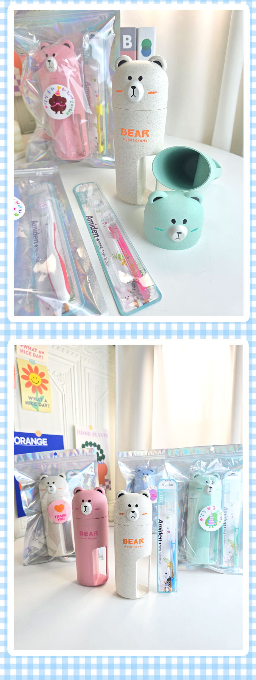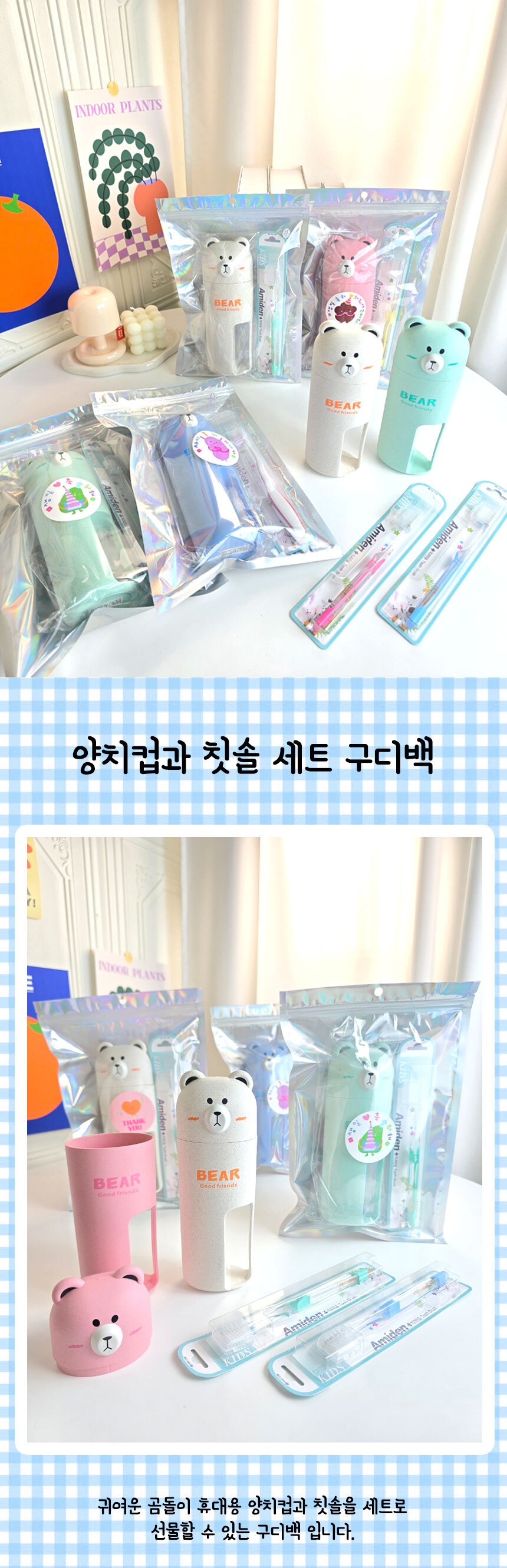 > [구디백] 곰돌이 양치컵과 칫솔 세트 어린이집 영어 유치원 답례품 단체선물 휴대용