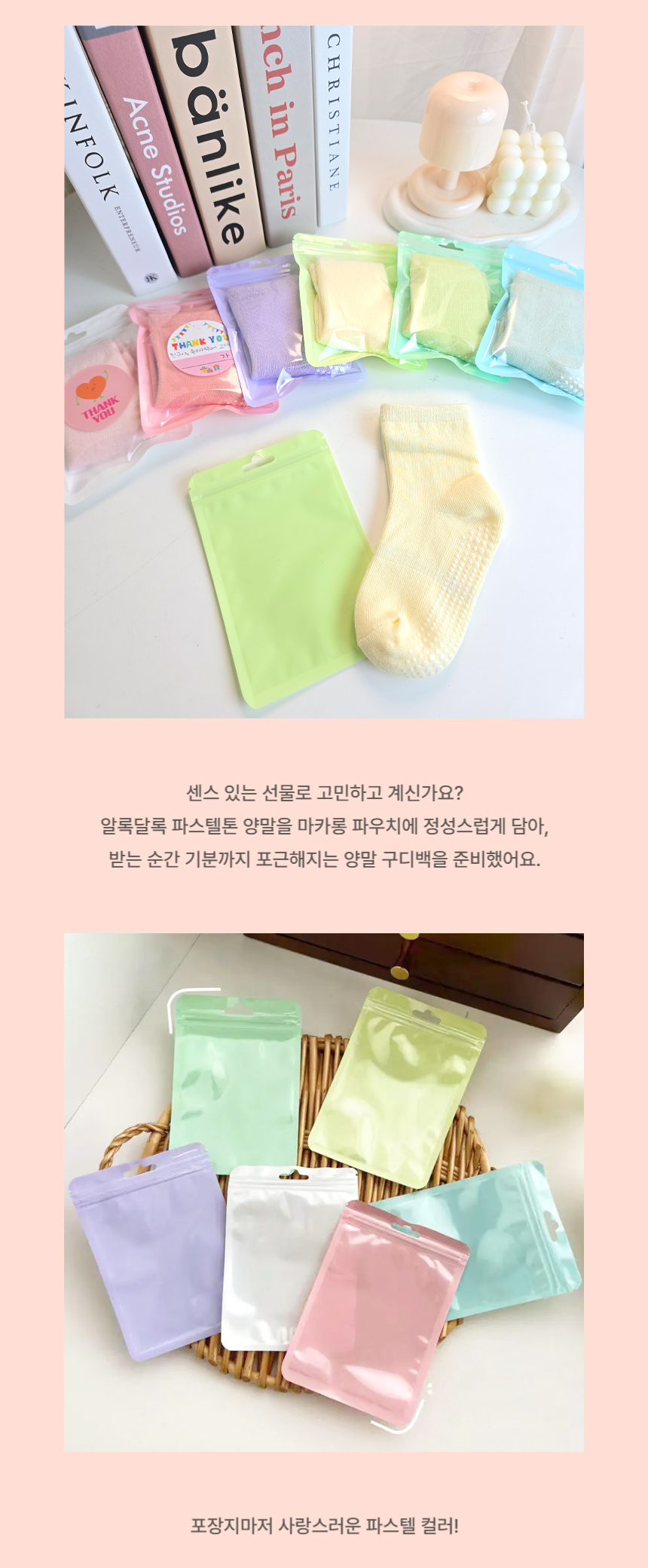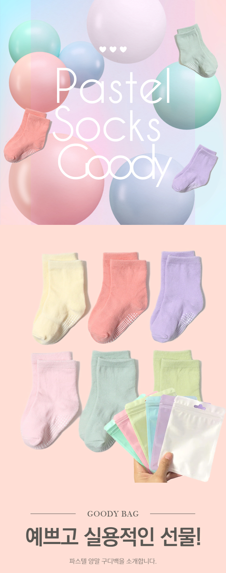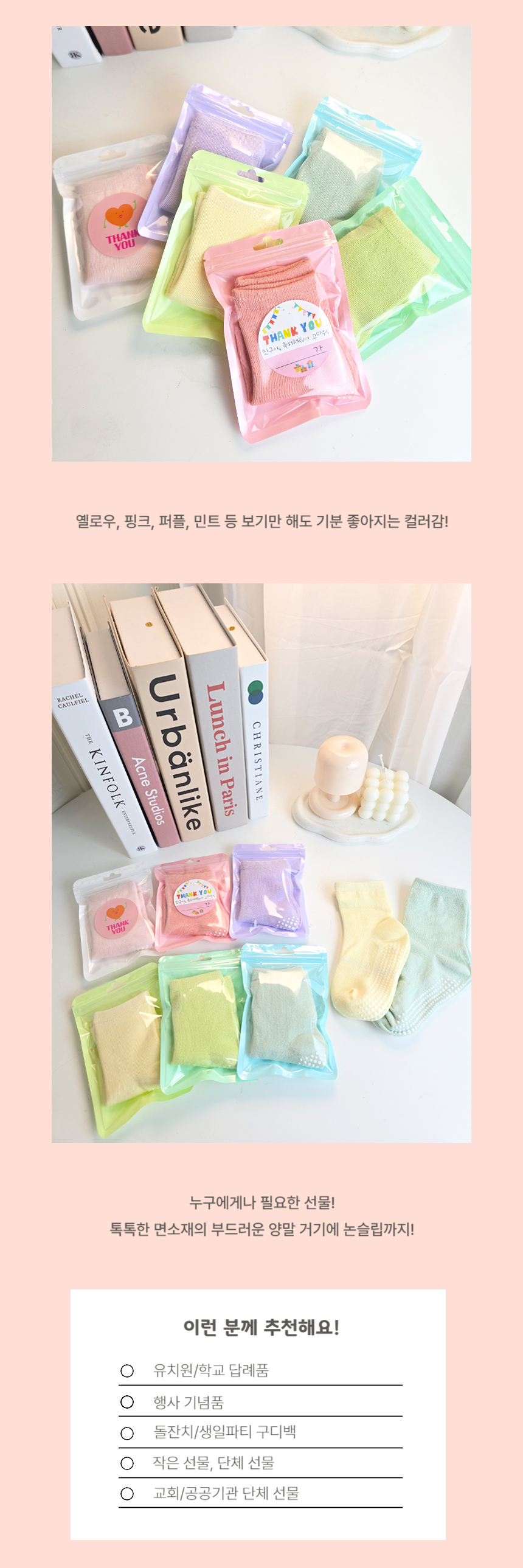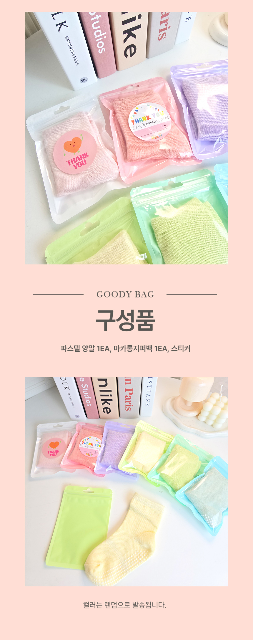 [구디백] 파스텔 양말 마카롱 답례품 어린이집 영어 유치원 학교 단체선물