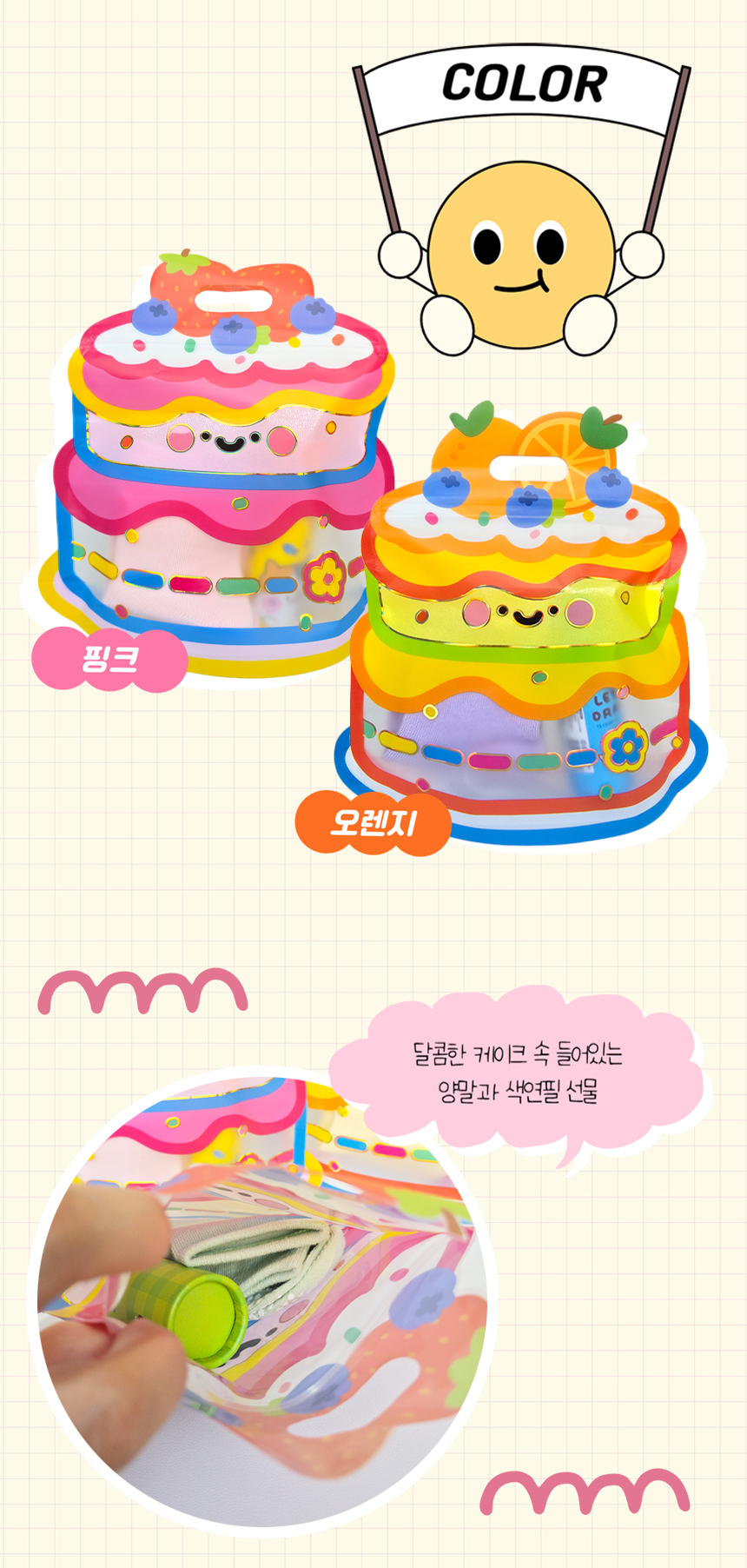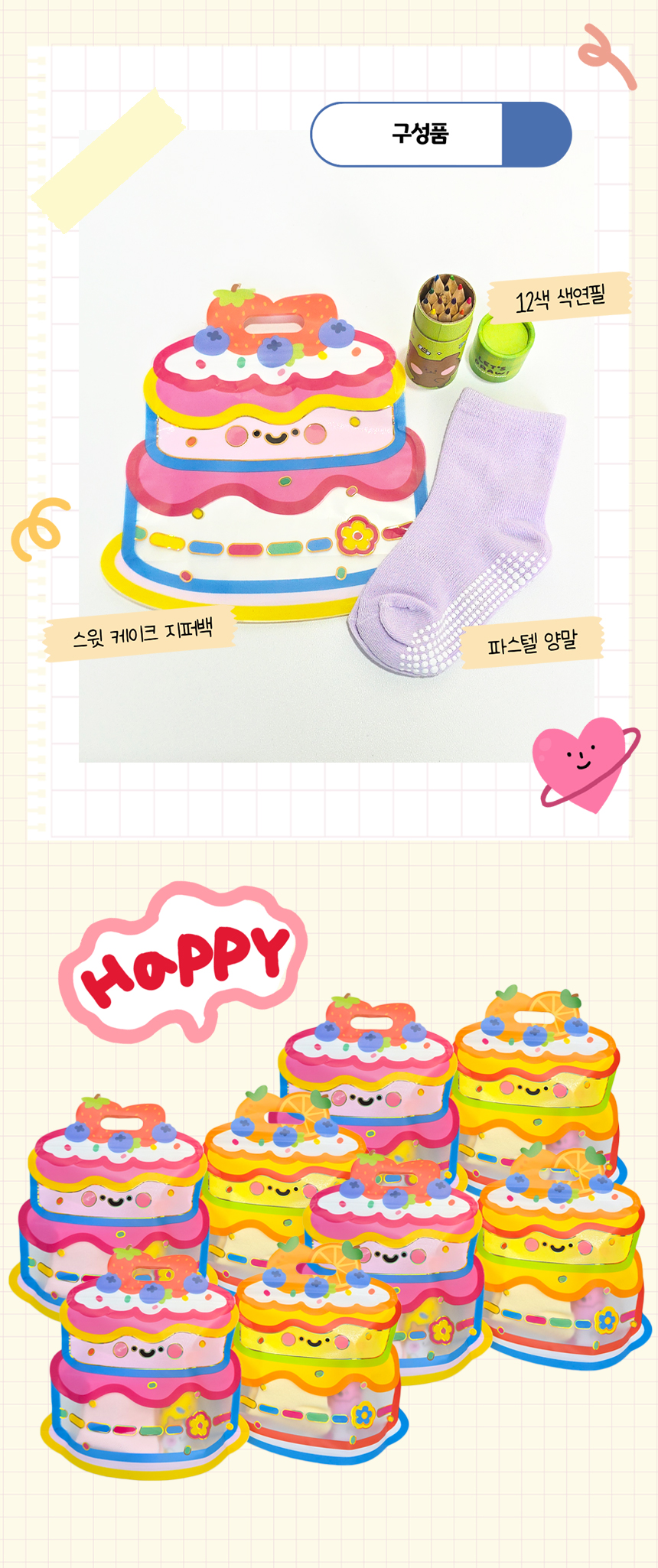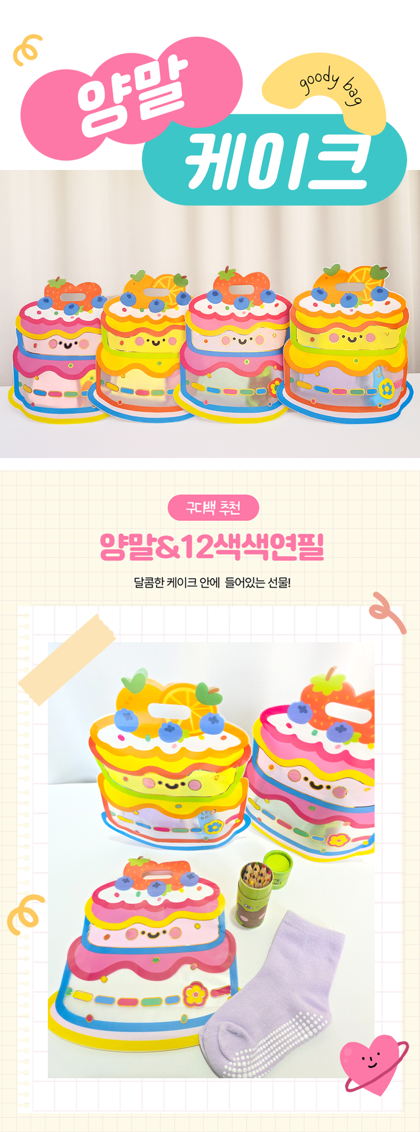 > [구디백] 양말 케이크 12색 우드 색연필 어린이집 영어 유치원 교회 단체선물 답례품