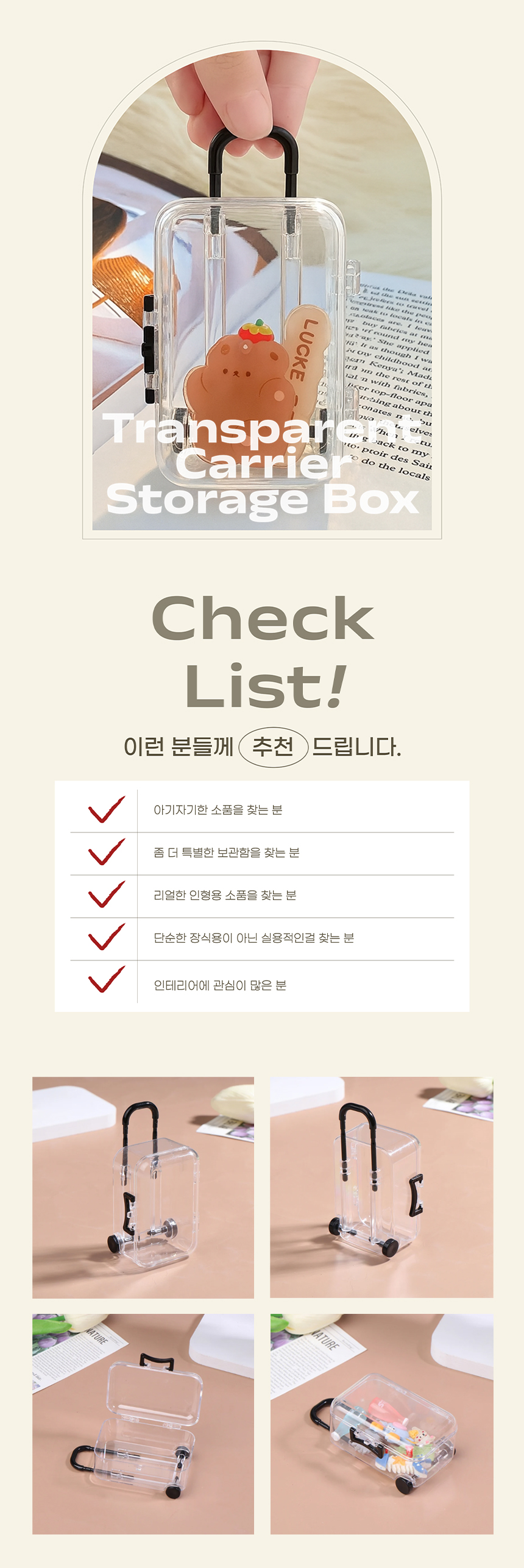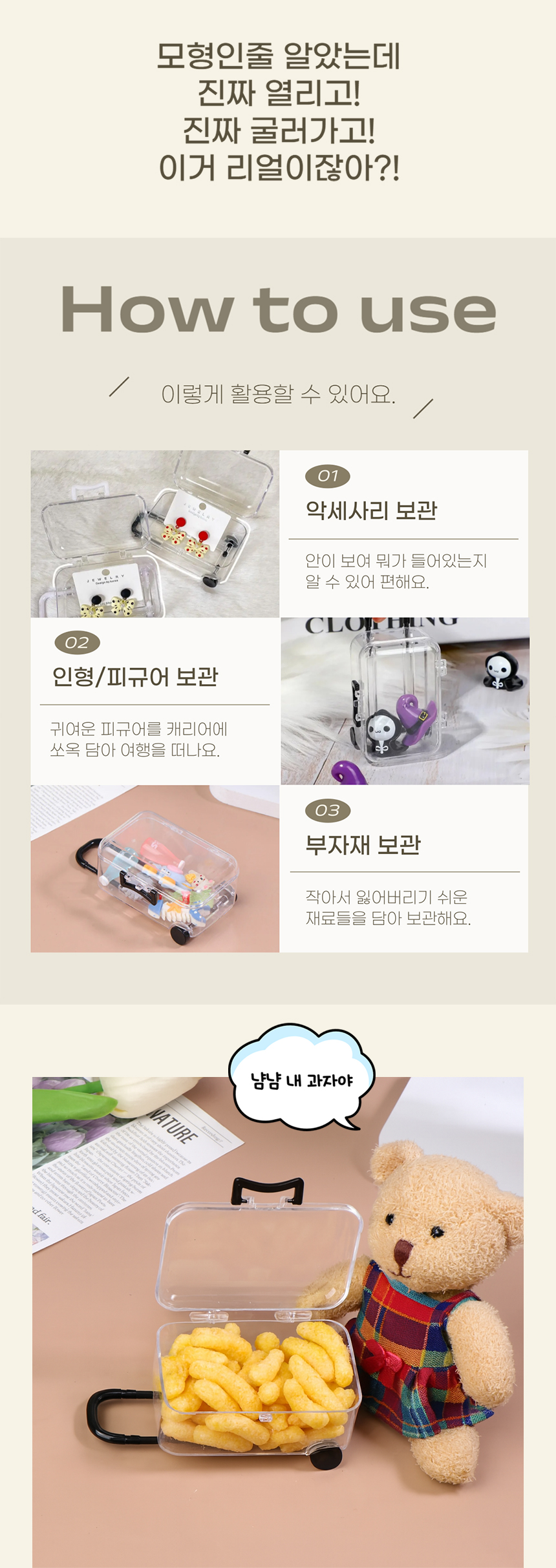 미니 캐리어 투명 보관함 케이스 미니어쳐 악세사리 소품 간식 정리함