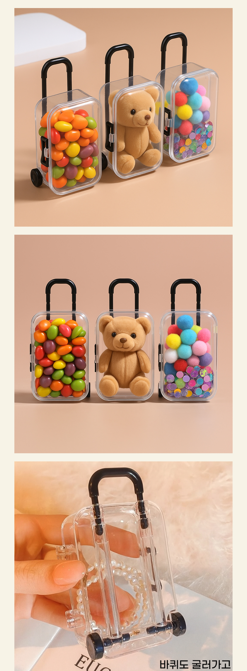 > 미니 캐리어 투명 보관함 케이스 미니어쳐 악세사리 소품 간식 정리함