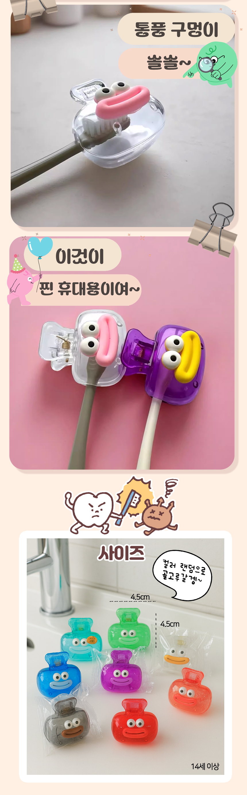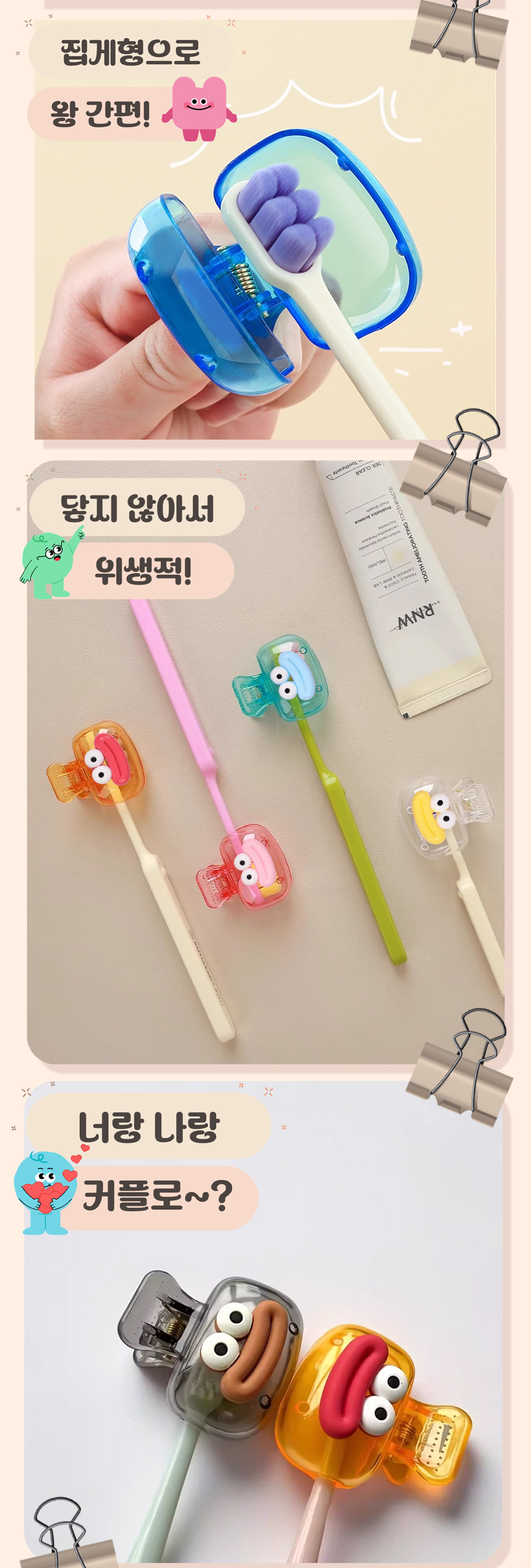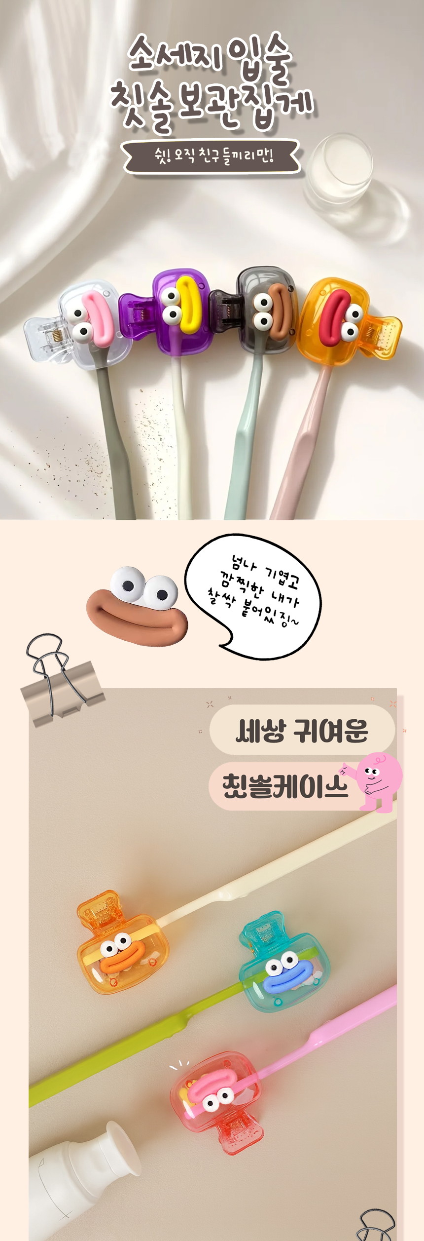 > 소세지 입술 칫솔 보관 케이스 집게형 커버 여행용 단체선물 휴대용