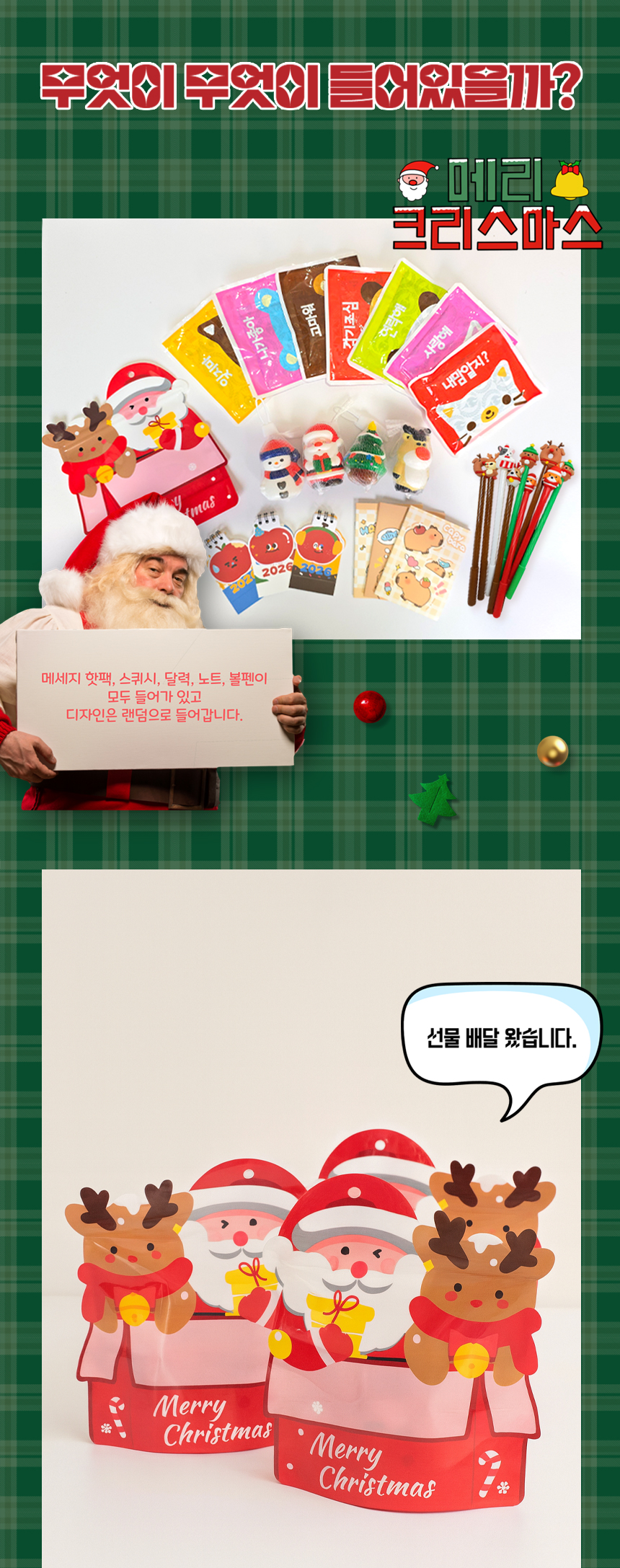 > [구디백]산타와 돌프의 시크릿 선물 생일 단체 크리스마스 문구 세트 답례품 포장