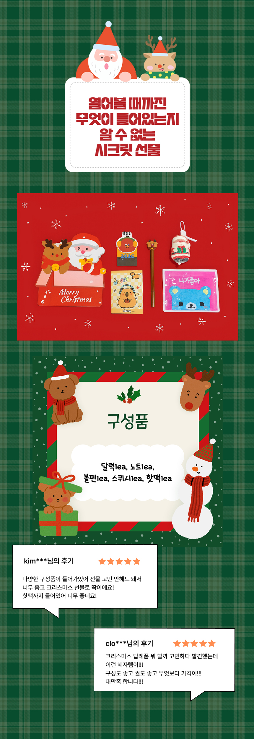 [구디백]산타와 돌프의 시크릿 선물 생일 단체 크리스마스 문구 세트 답례품 포장