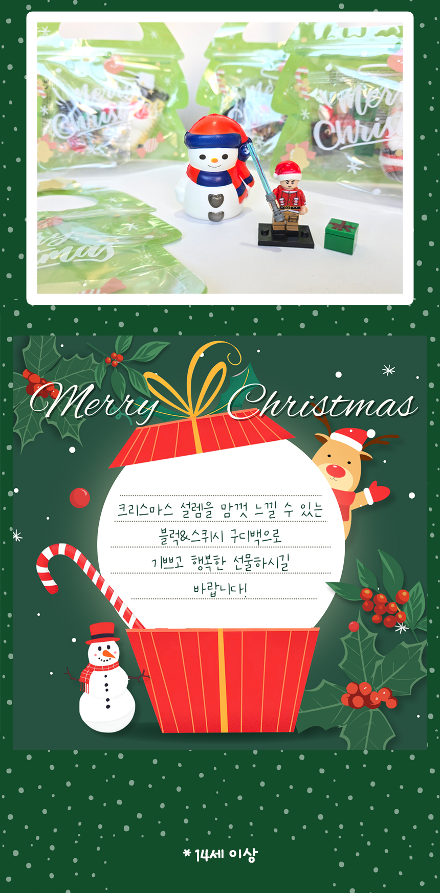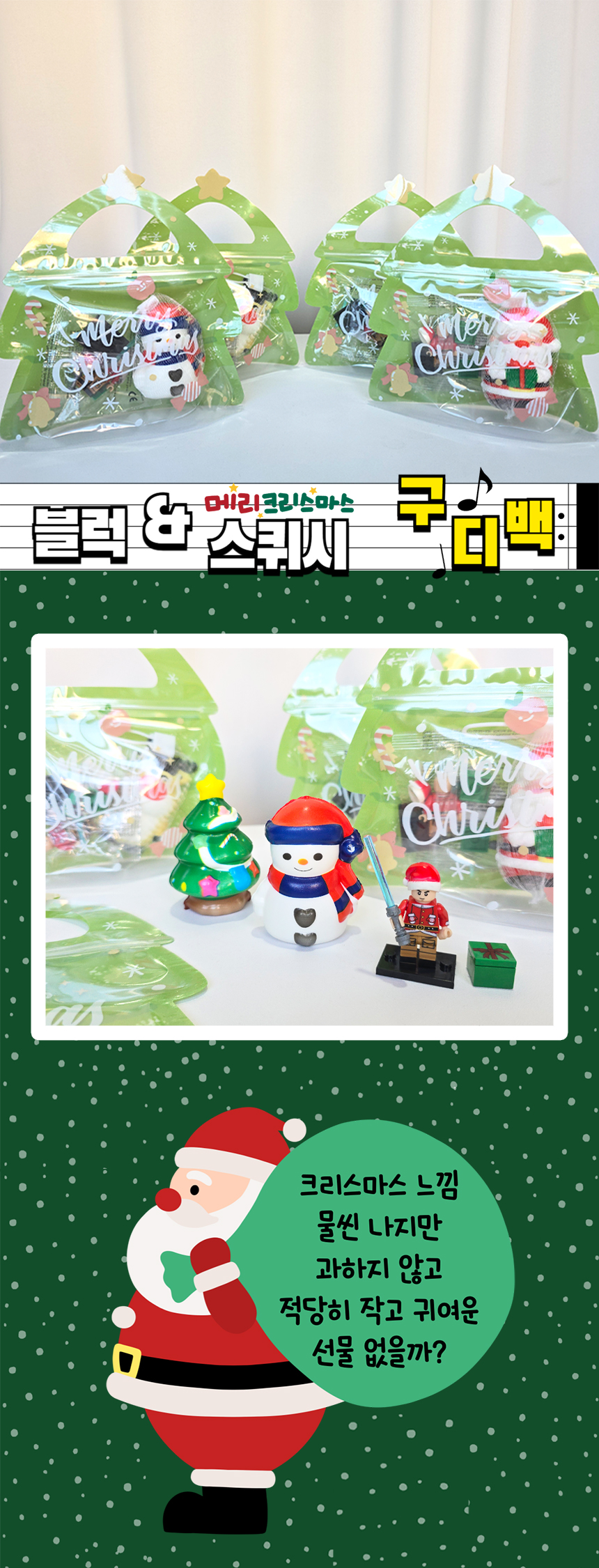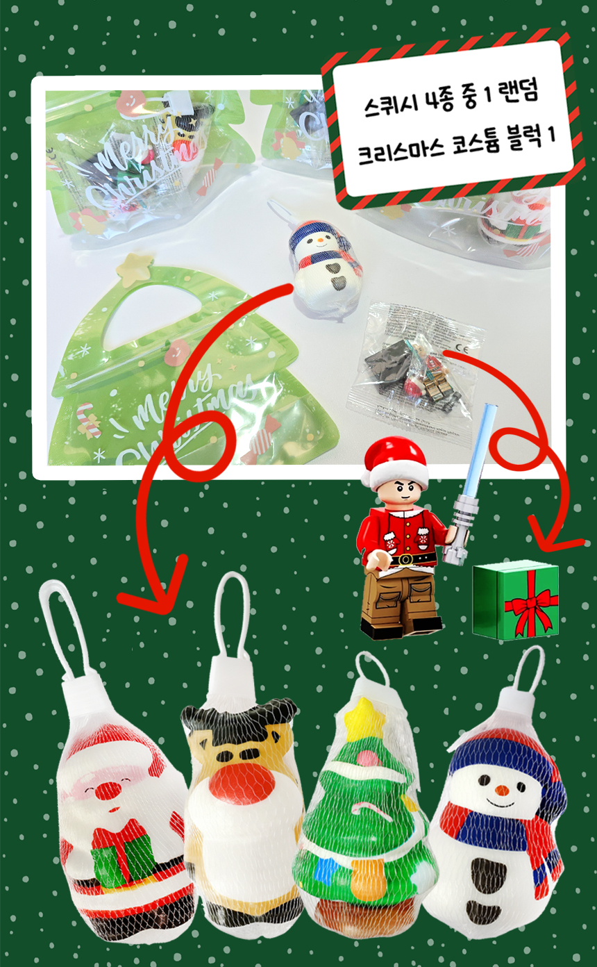 > 크리스마스 블럭 스퀴시 구디백 답례품 포장 크리스마스 단체선물