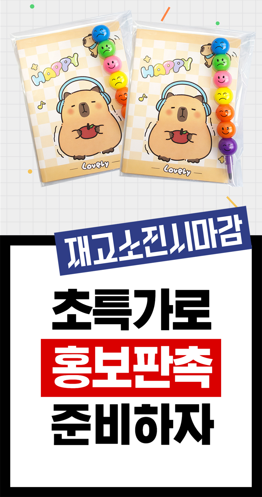 > 미니노트 색연필 판촉물 카피바라 수첩 단체 답례품 학원 학교 홍보 행사선물