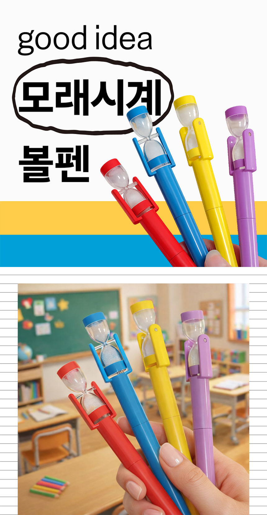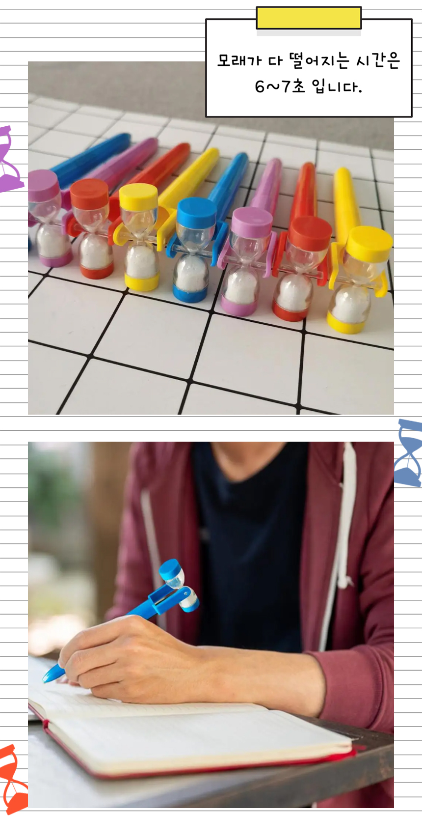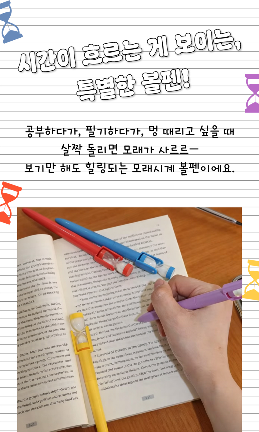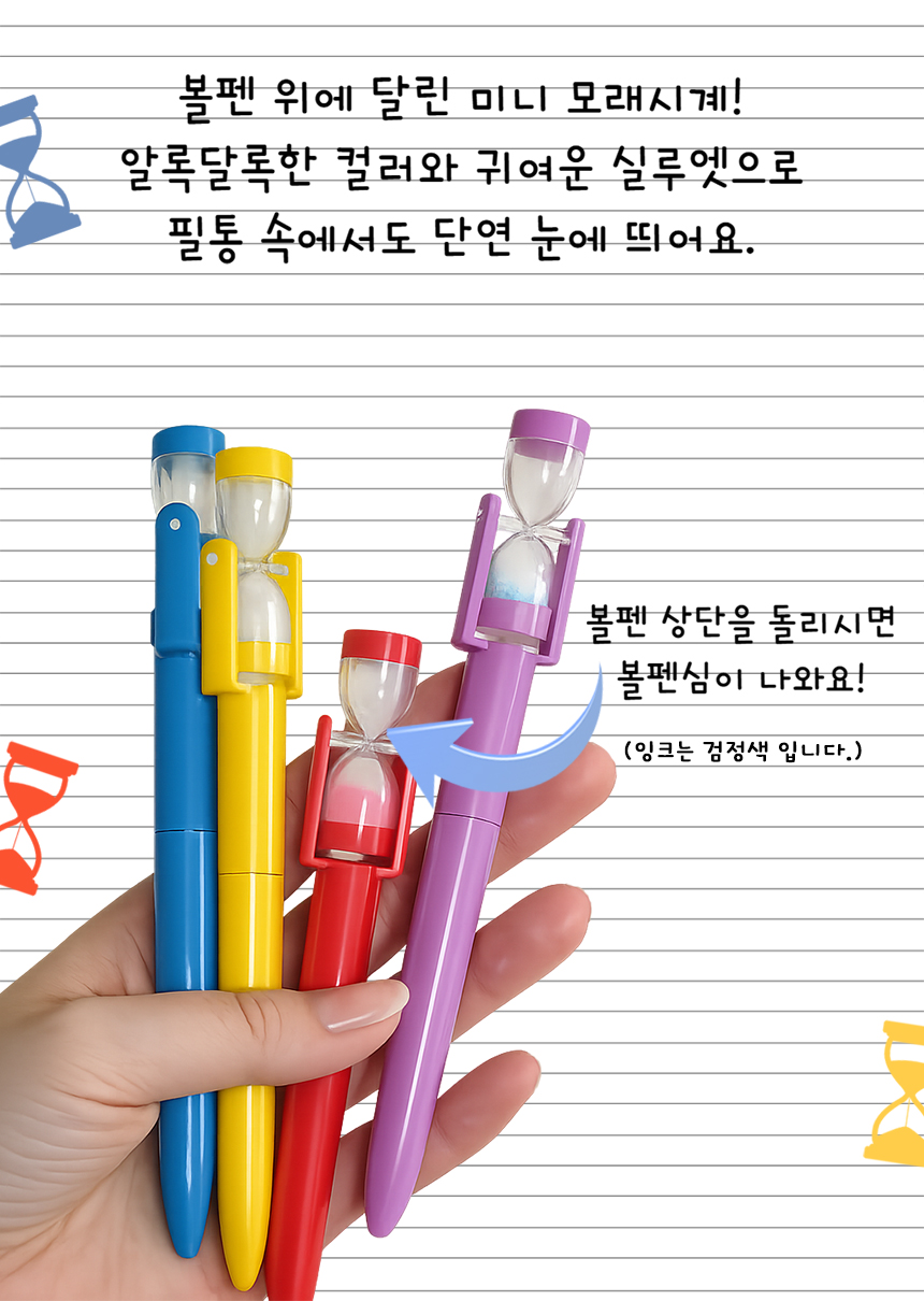 > 모래시계 볼펜 회전 타이머 문구 단체선물