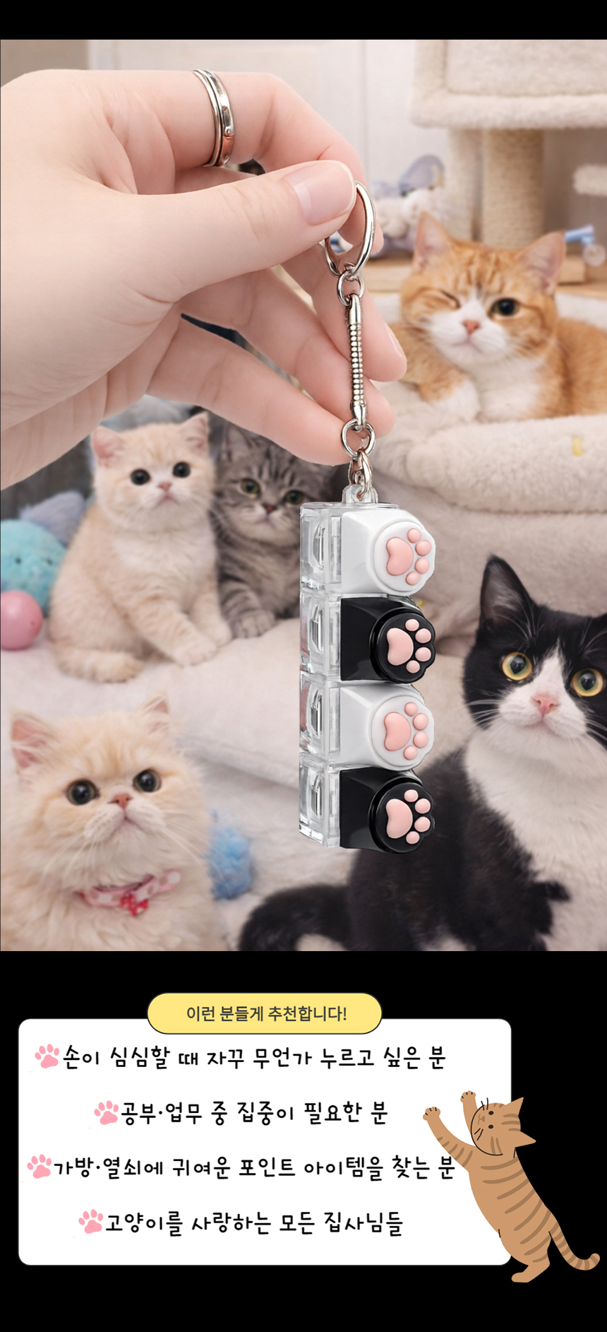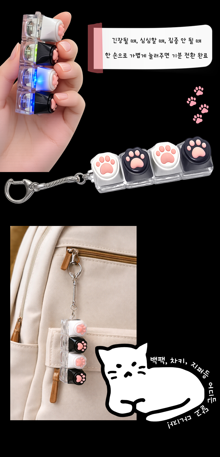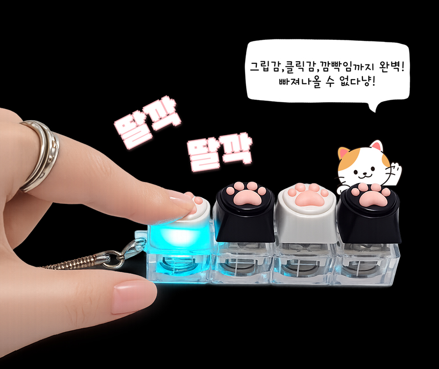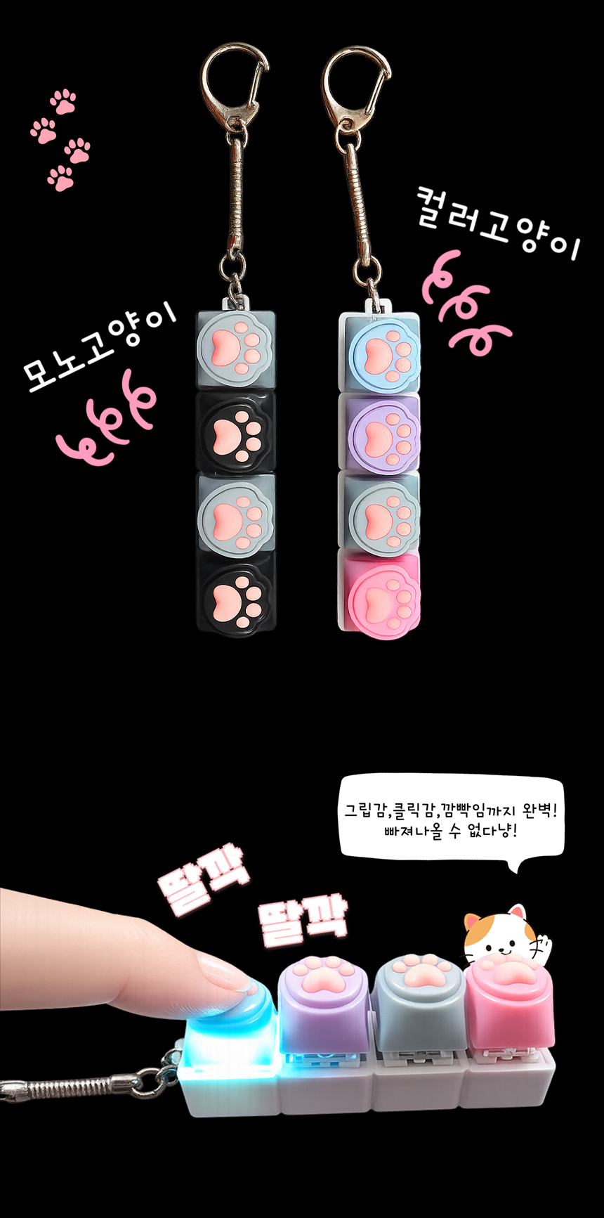흑백고양이 딸깍이 키링 LED 불빛 버튼 열쇠고리 선물 피젯토이 키캡