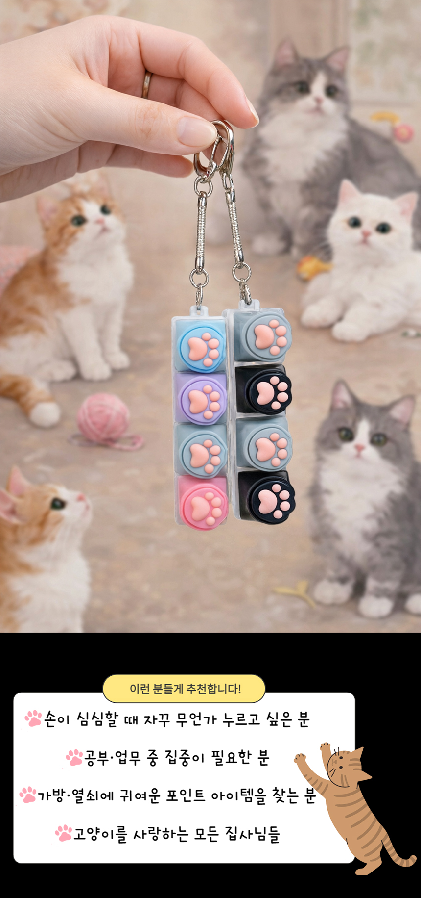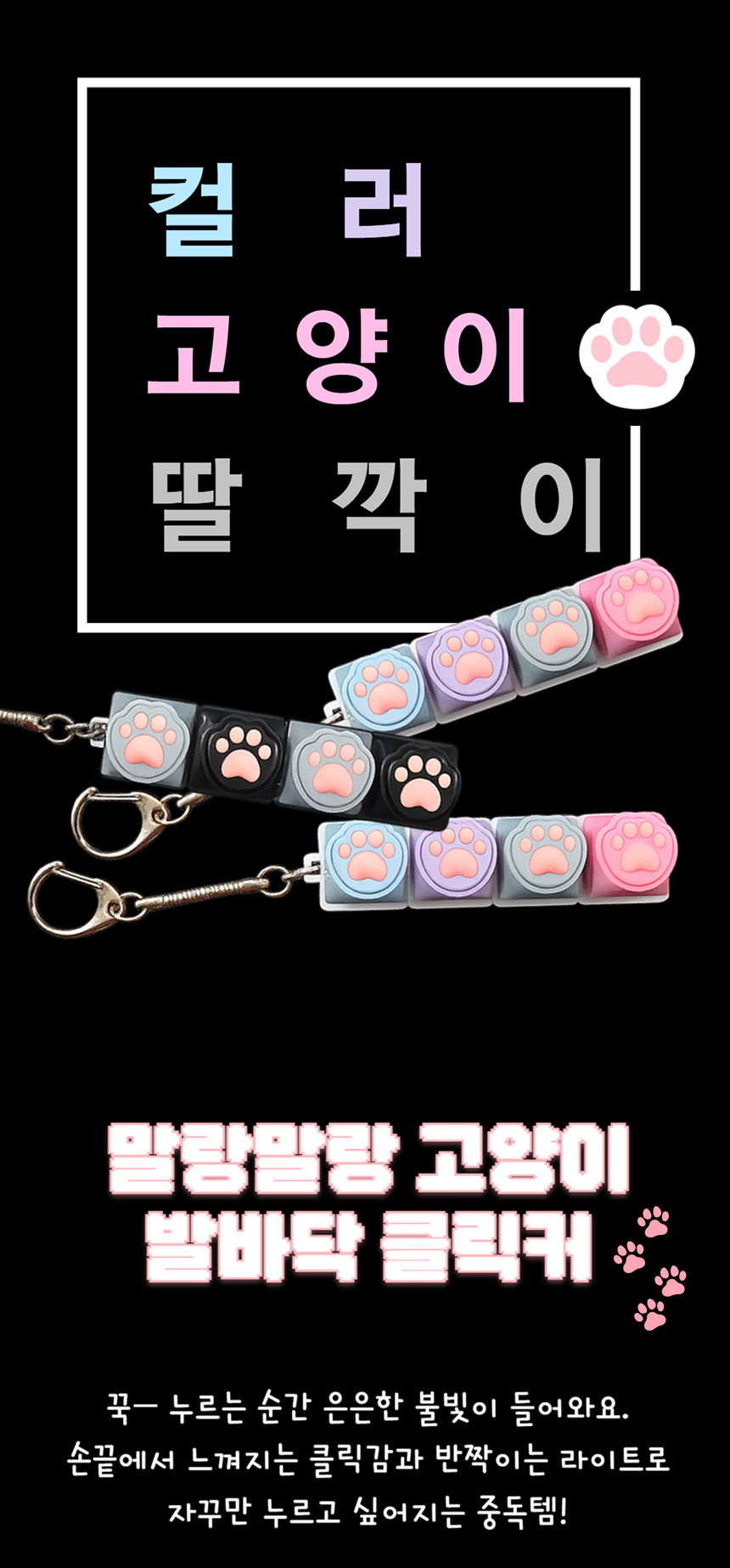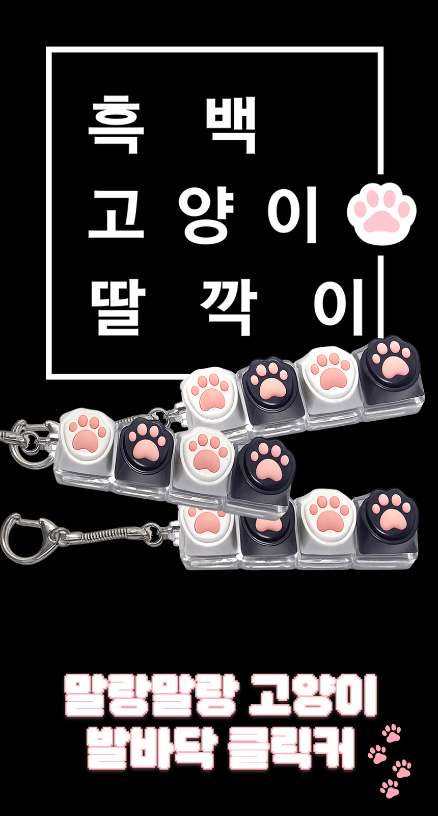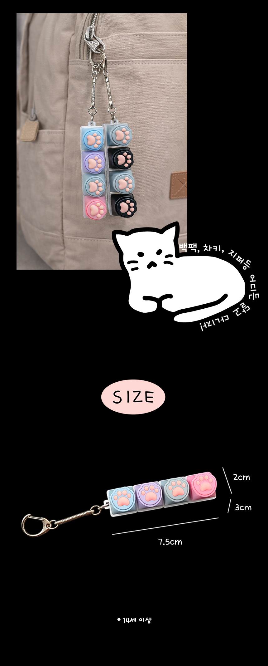흑백고양이 딸깍이 키링 LED 불빛 버튼 열쇠고리 선물 피젯토이 키캡