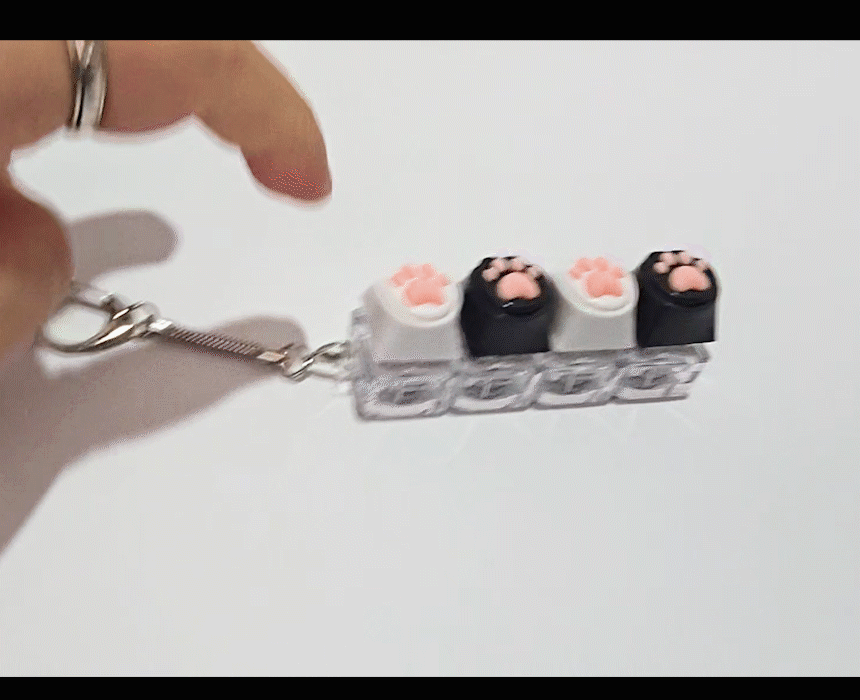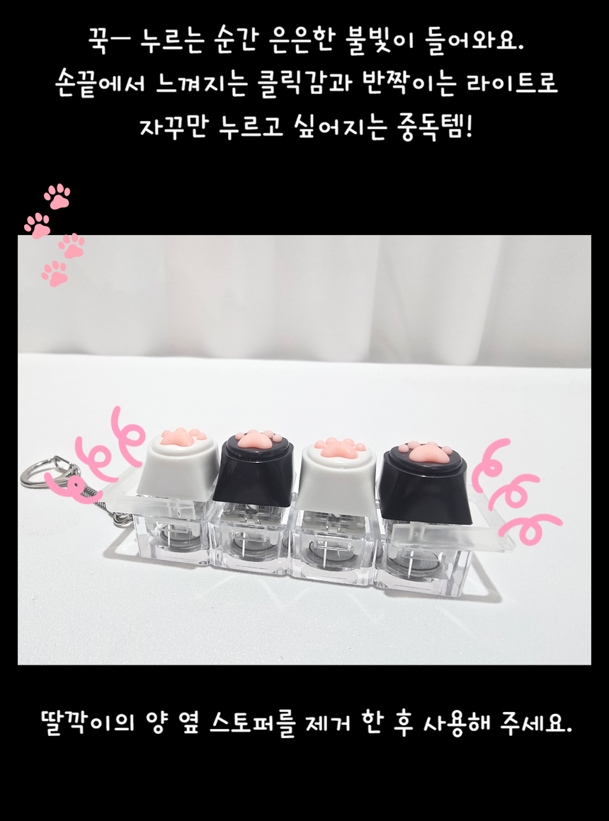 > 흑백고양이 딸깍이 키링 LED 불빛 버튼 열쇠고리 선물 피젯토이 키캡