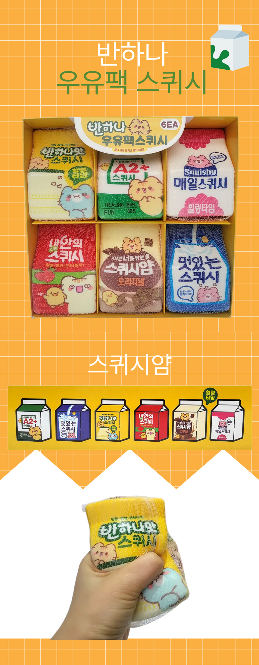 > 반하나 우유팩 스퀴시 쫀득 주물럭 말랑이 스트레스 해소 선물