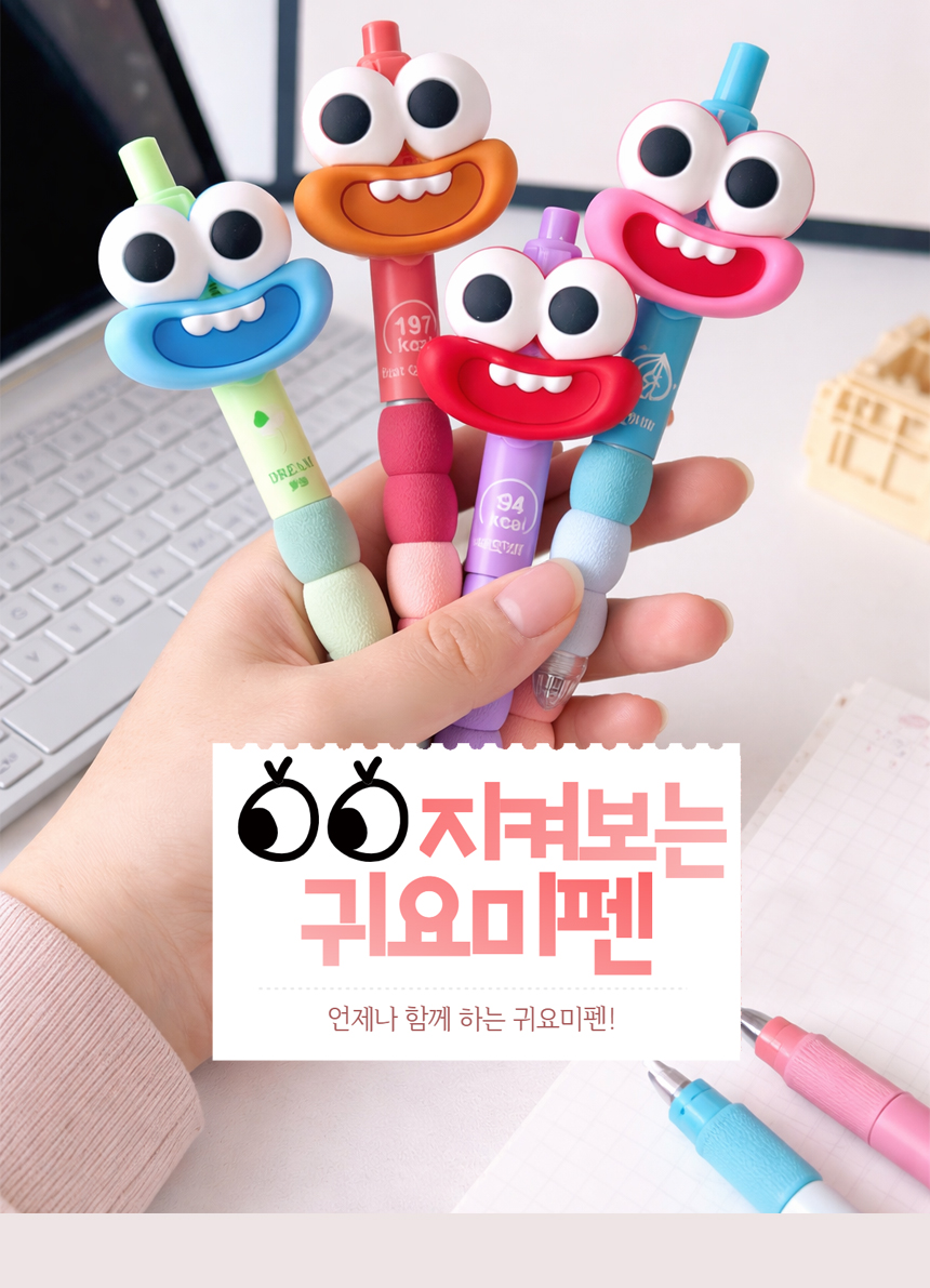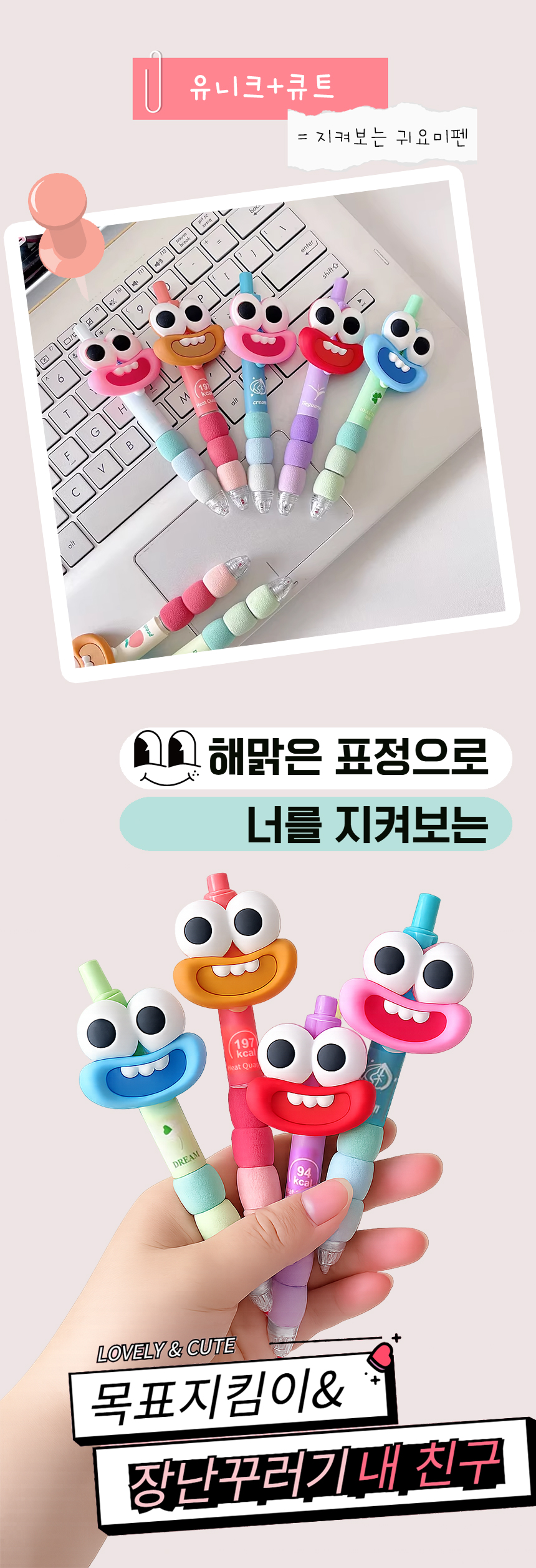 > 지켜보는 귀요미 볼펜 왕눈이 입술 캐릭터 귀여운펜 젤펜 단체선물