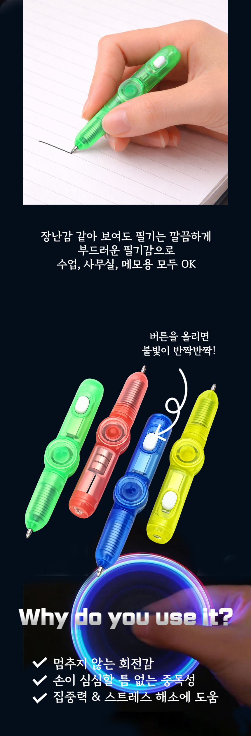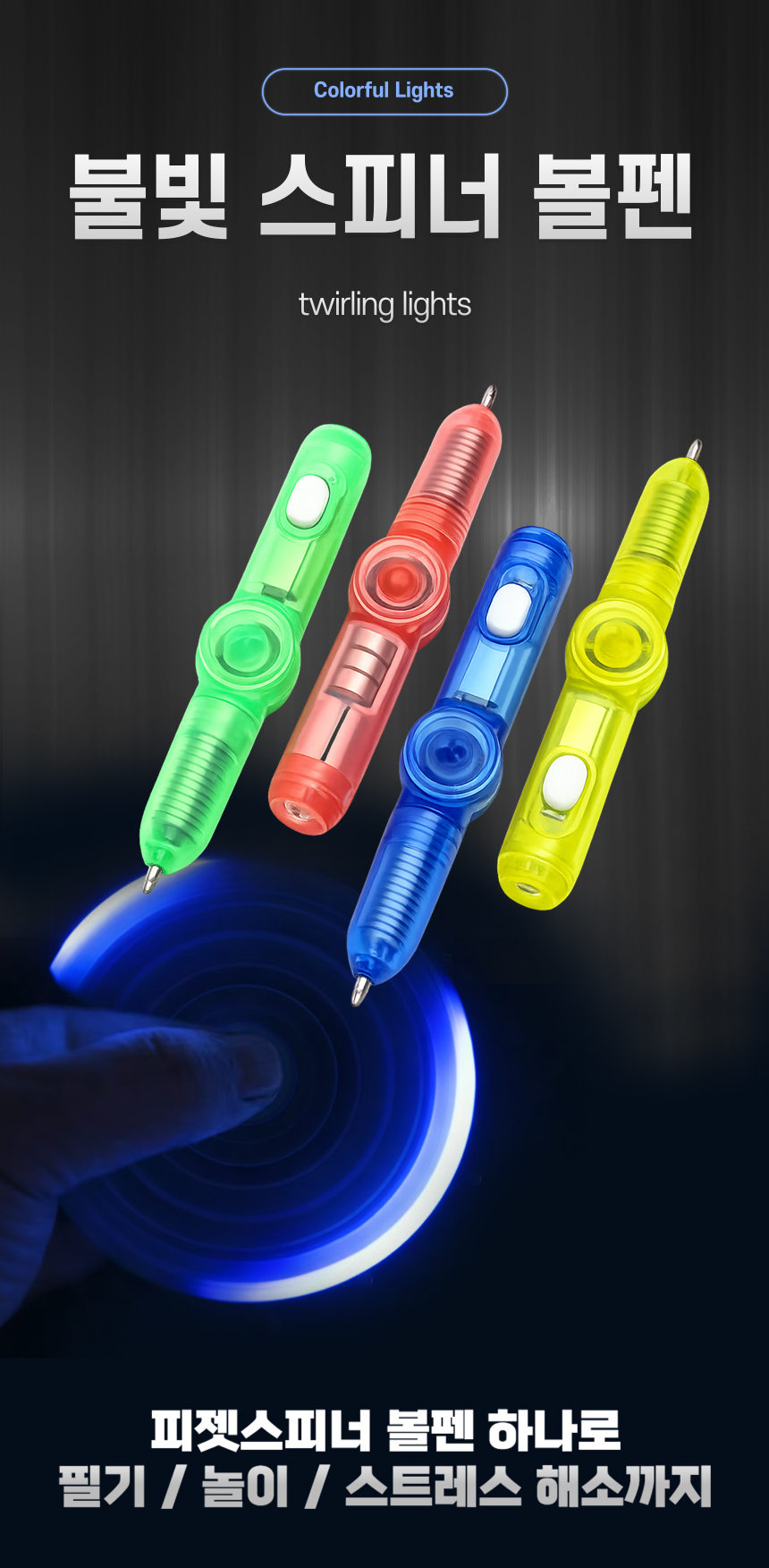 불빛 스피너 볼펜 라이트 피젯 돌리기 단체선물 판촉물