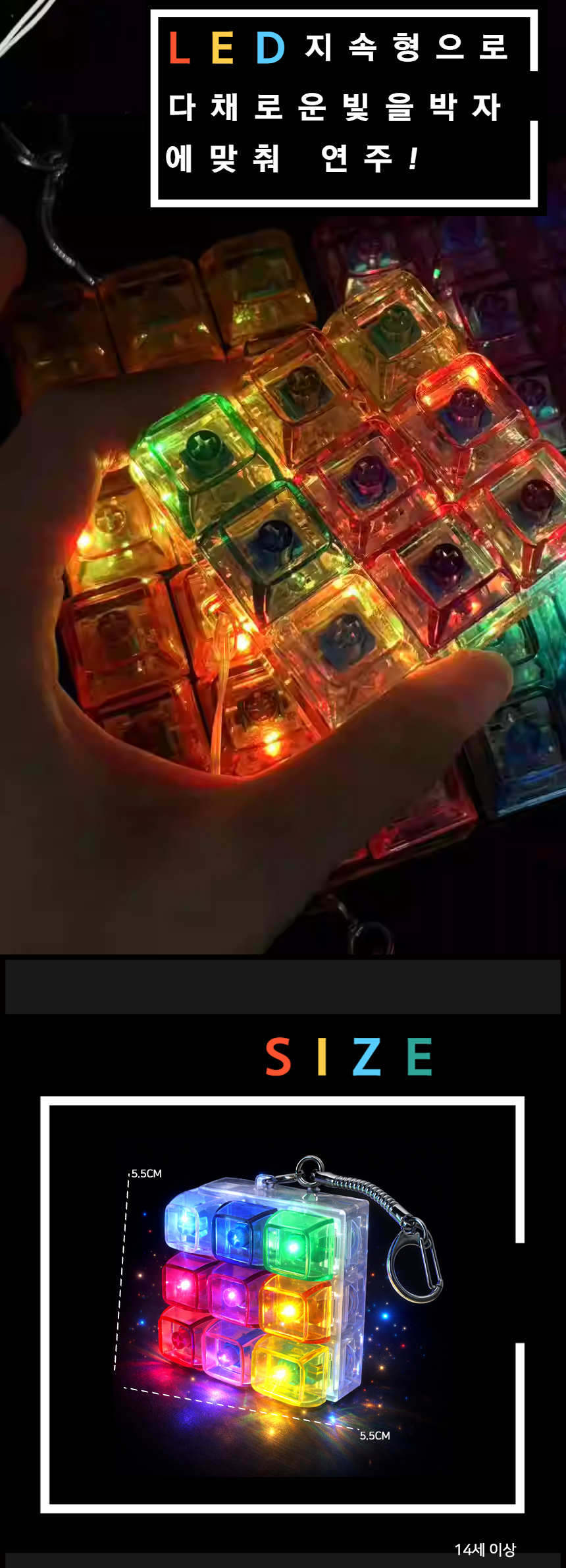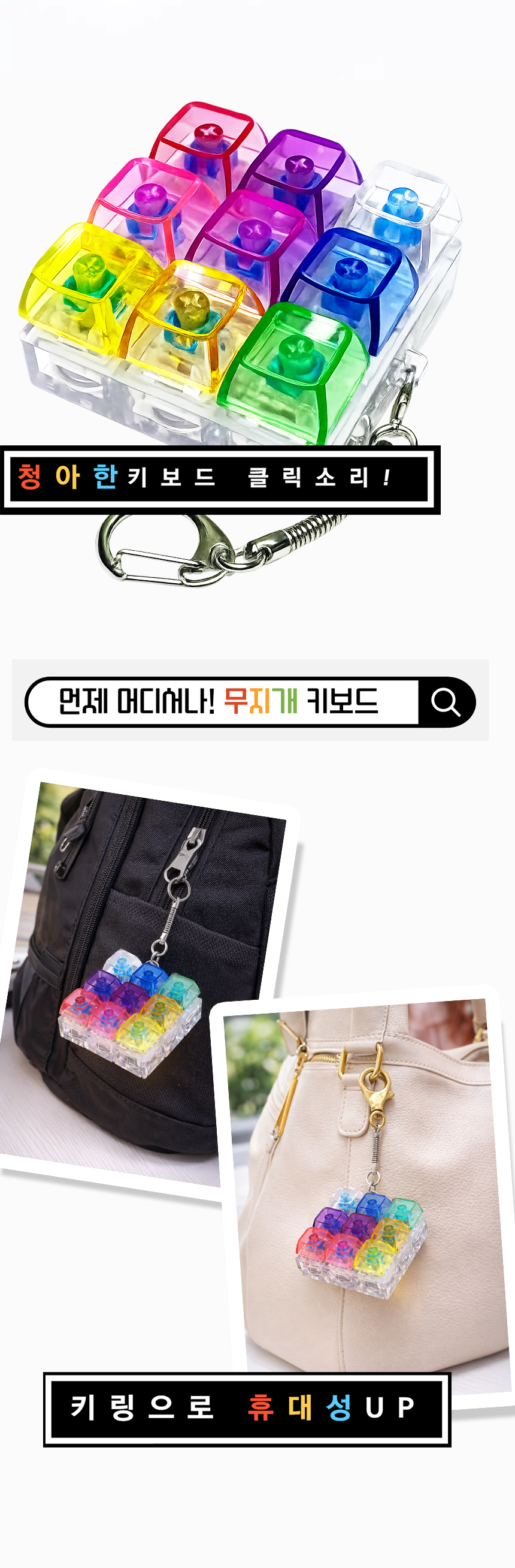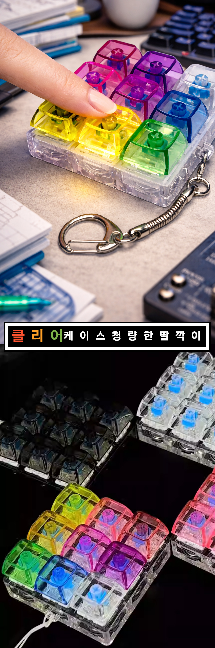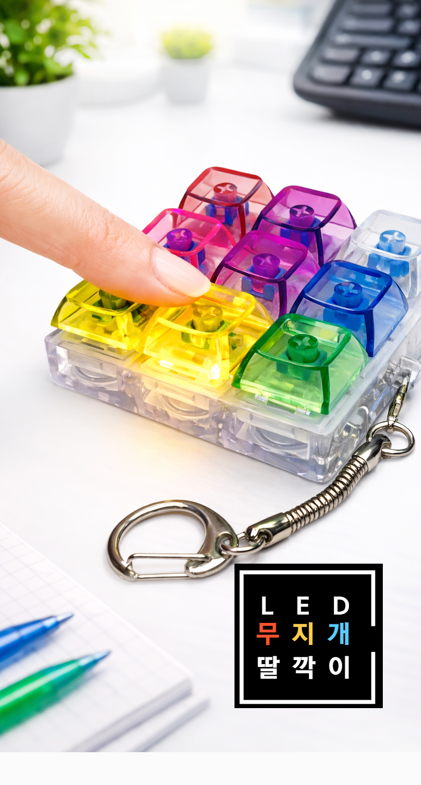 > 무지개 딸깍이 키링 LED 키보드 9구 열쇠고리 피젯