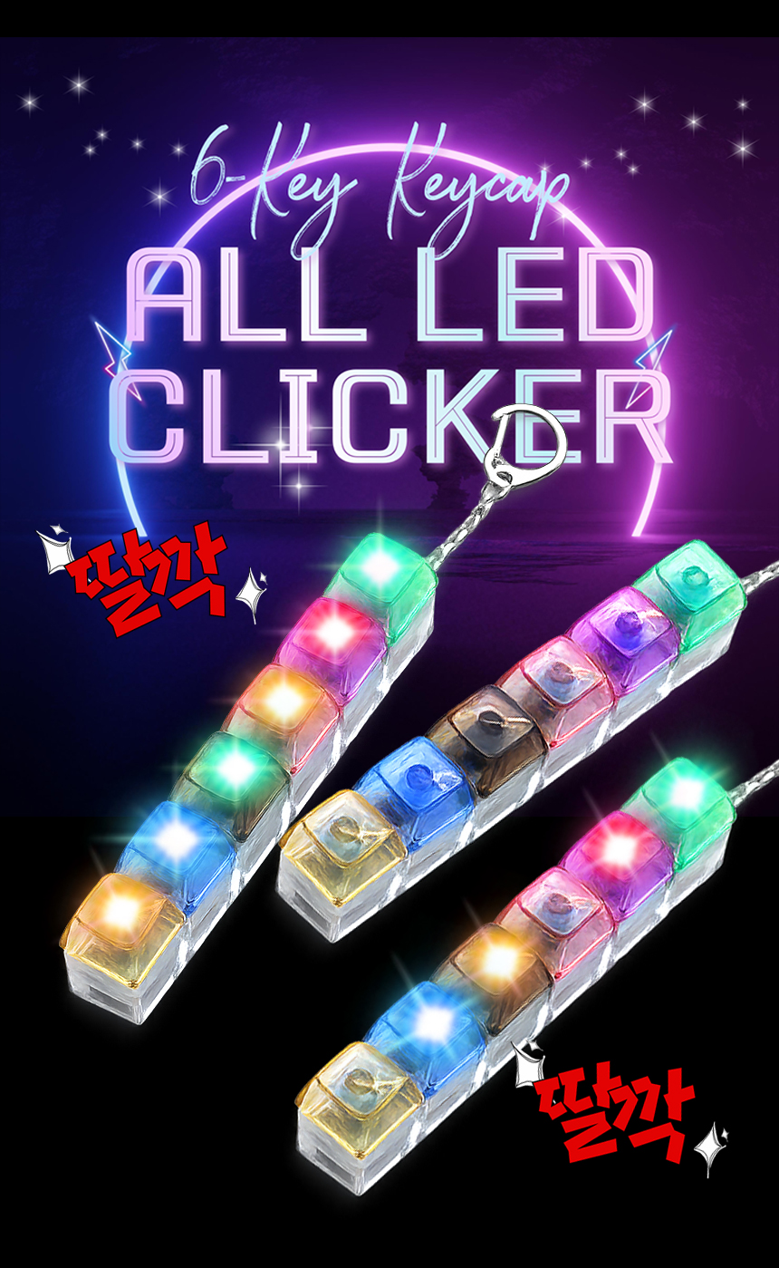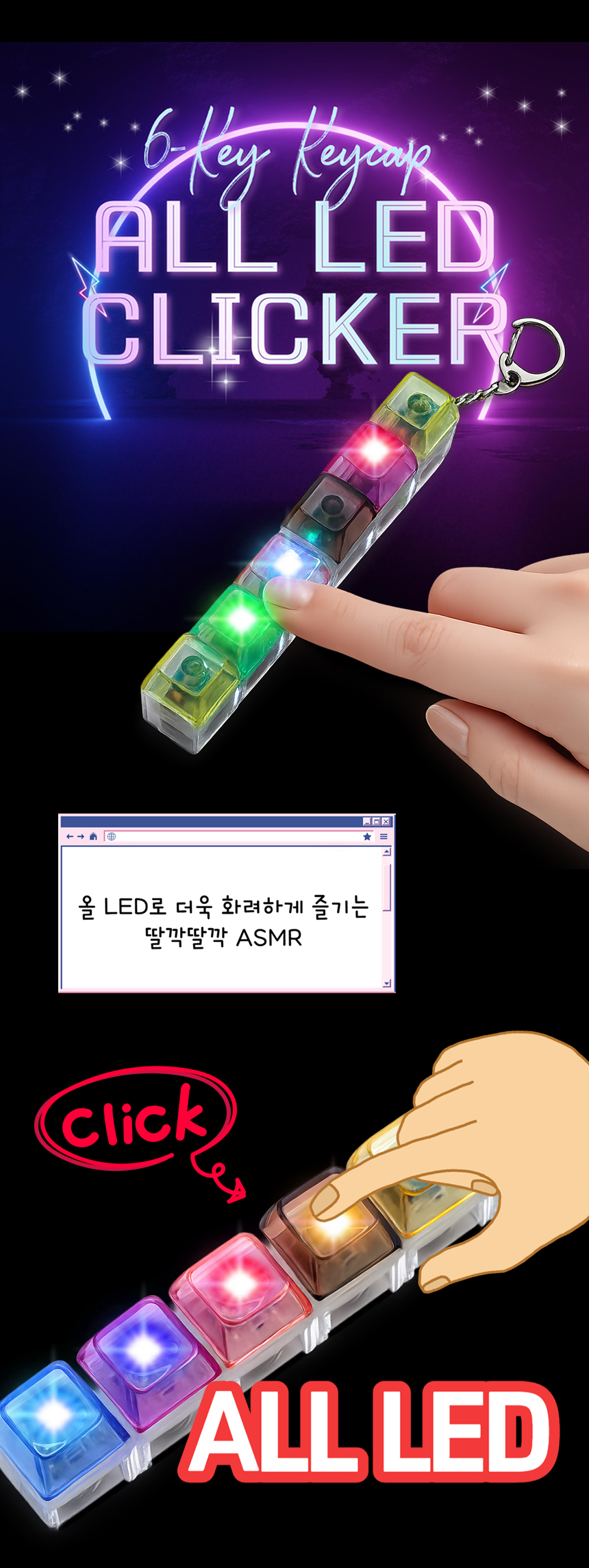 > 6구 올 LED 딸깍이 키링 키보드 ASMR 키캡 클리커 클릭 열쇠고리