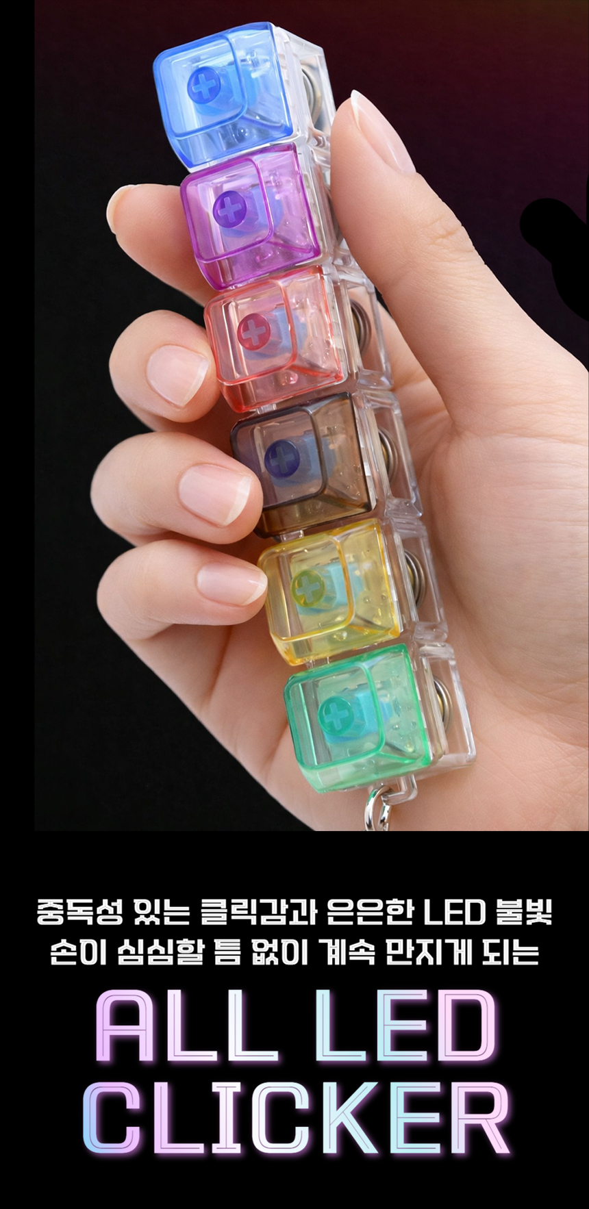 6구 올 LED 딸깍이 키링 키보드 ASMR 키캡 클리커 클릭 열쇠고리