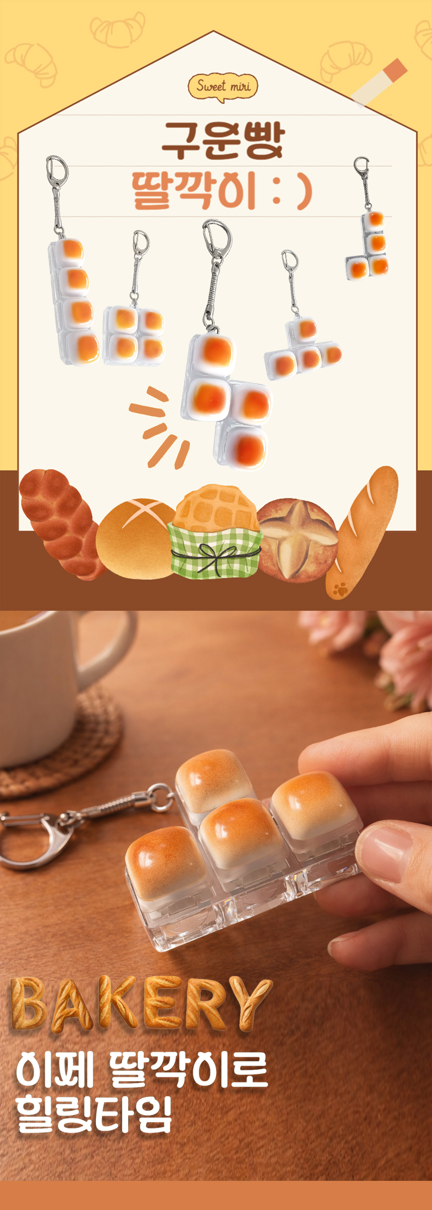구운 식빵 딸깍이 키링 카라멜빵 키캡 클릭커 귀여운 열쇠고리 피젯토이