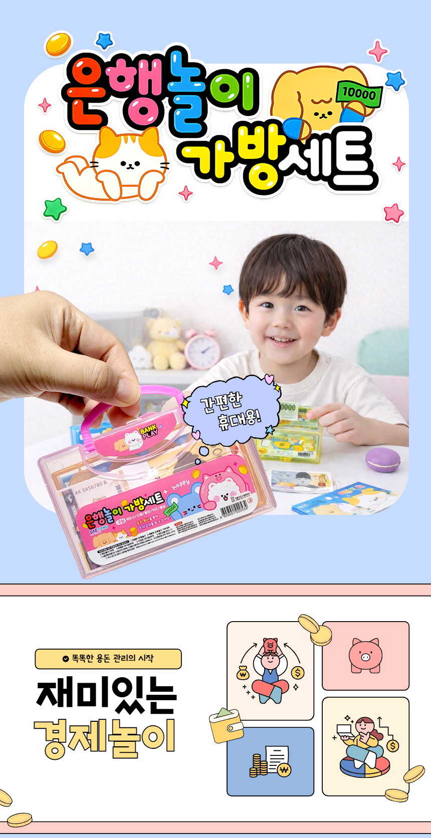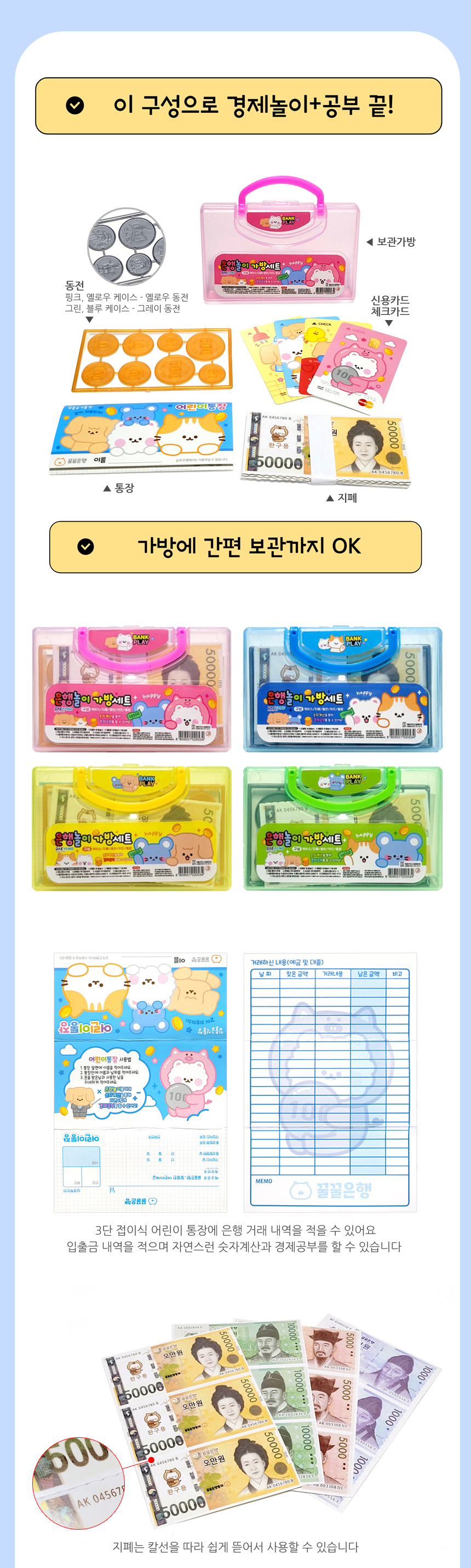 > 은행놀이 가방 세트 지폐 경제놀이 장난감돈 계산 역할