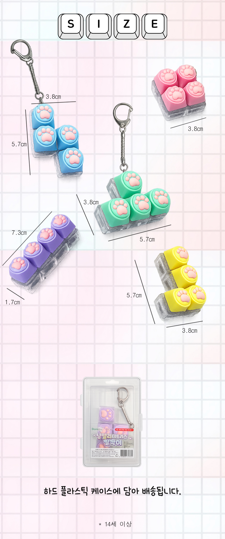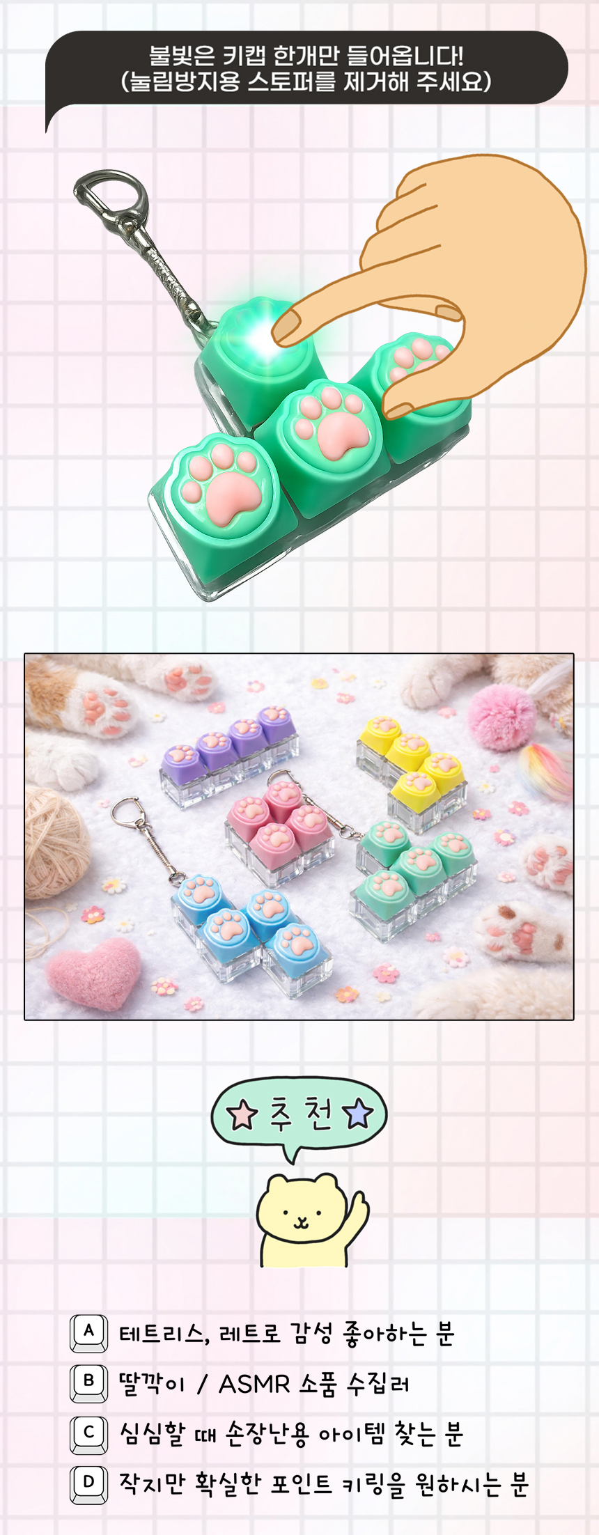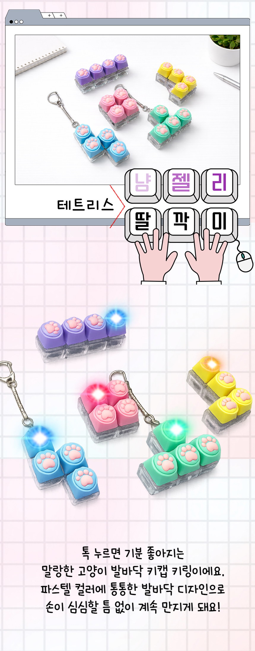 > 냥젤리 테트리스 딸깍이 키링 4구 키보드 고양이 키캡 클릭커 귀여운 열쇠고리