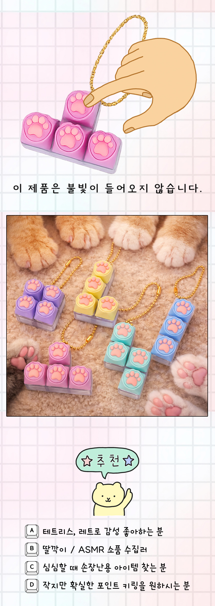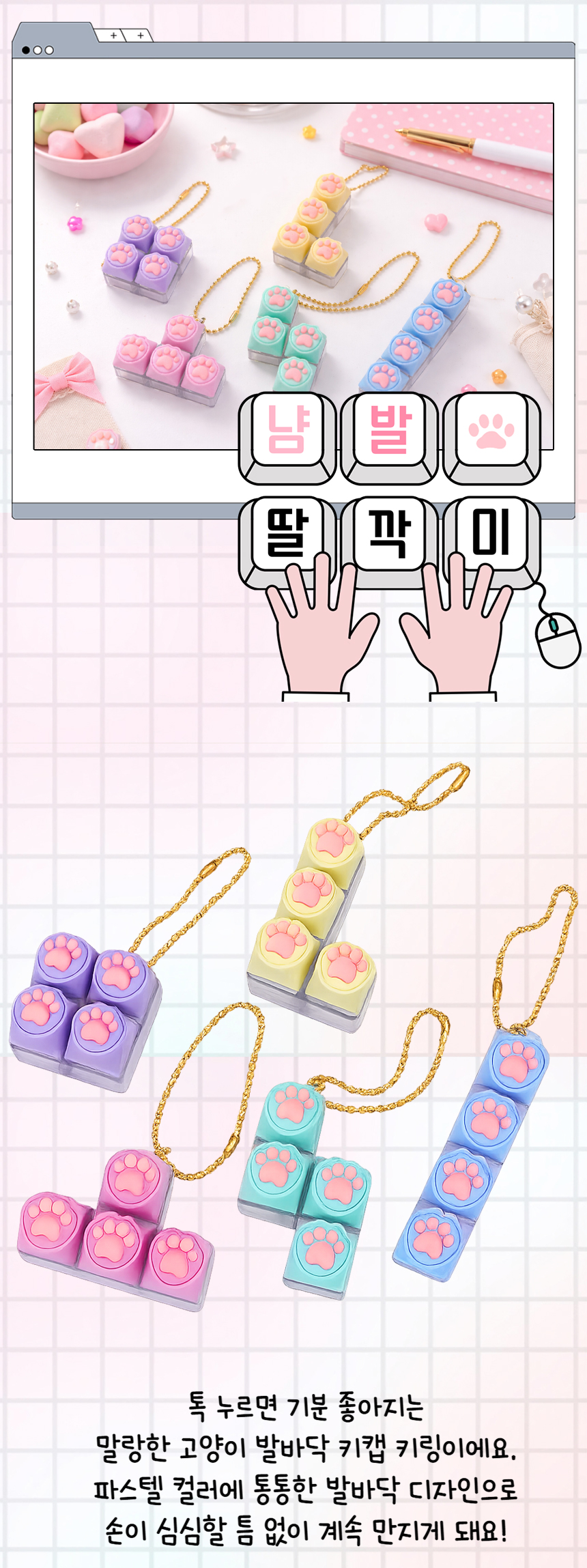 냥발 딸깍이 키링 클릭 고양이 키캡 클리커 귀여운 열쇠고리 스트레스 해소