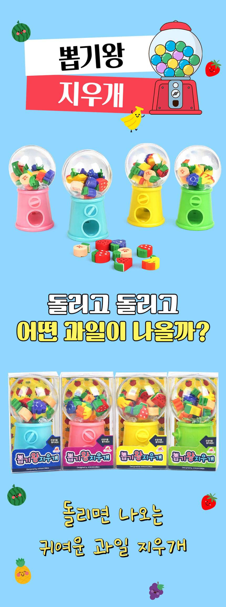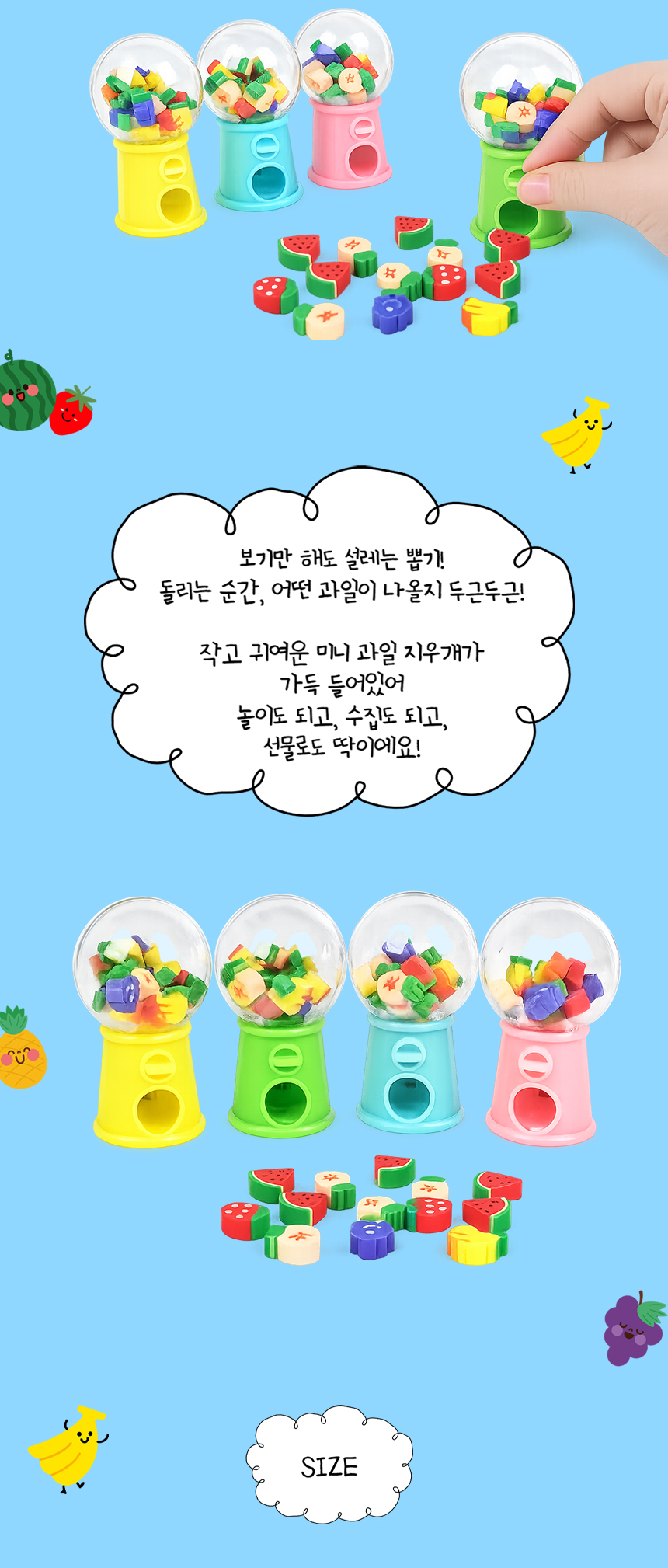 > 뽑기왕 지우개 행운 뽑기 랜덤 과일 모양 선물