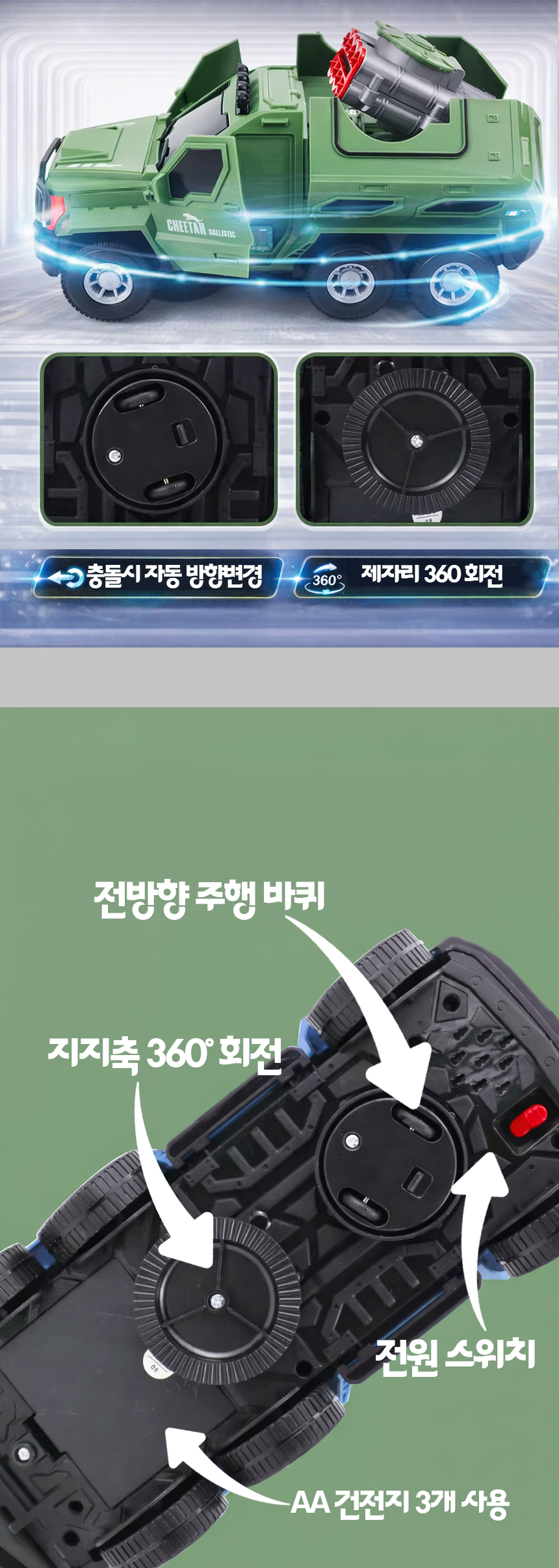 일렉트로닉 밀리터리카 사운드 LED 변신 작동 장난감 자동차