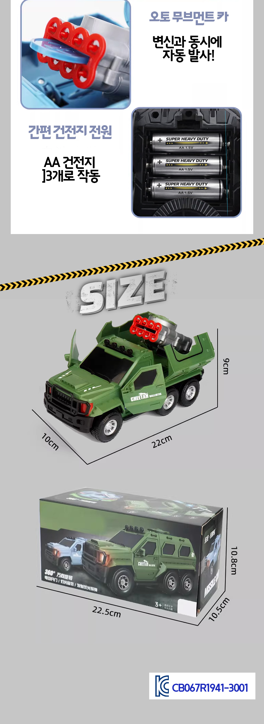 > 일렉트로닉 밀리터리카 사운드 LED 변신 작동 장난감 자동차