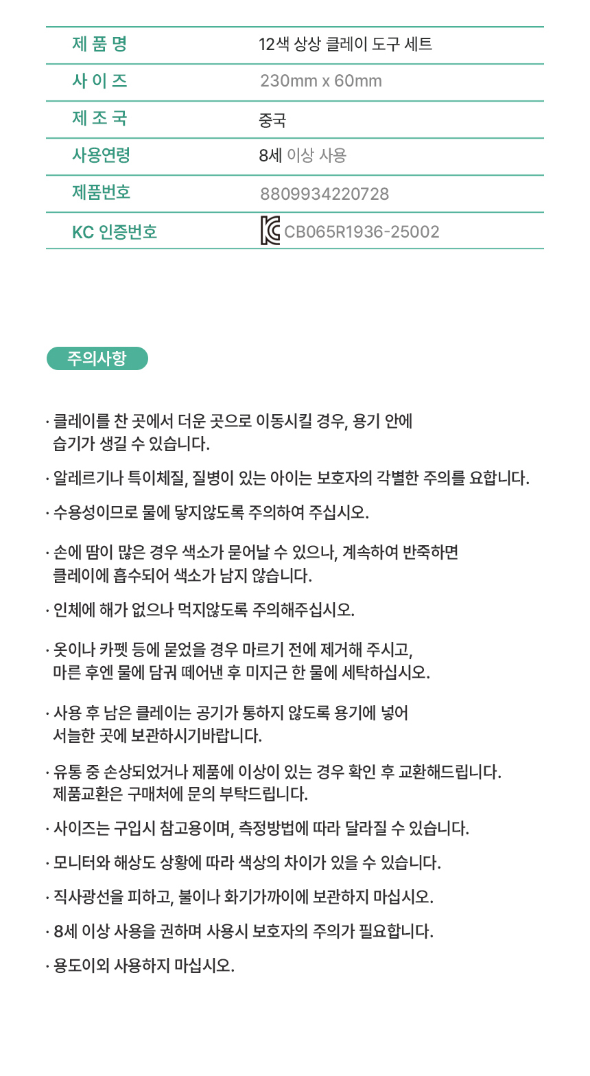 상상 12색 클레이 도구 세트 선물 컬러 촉감놀이 만들기