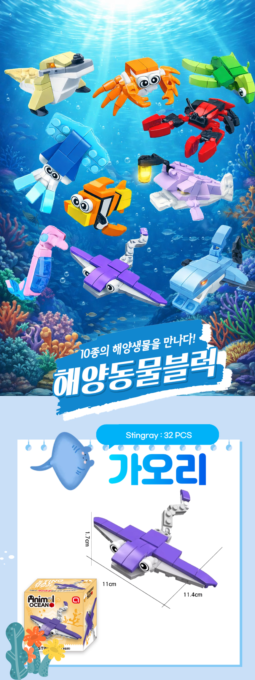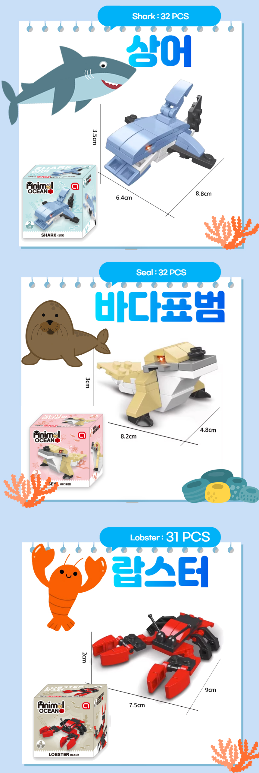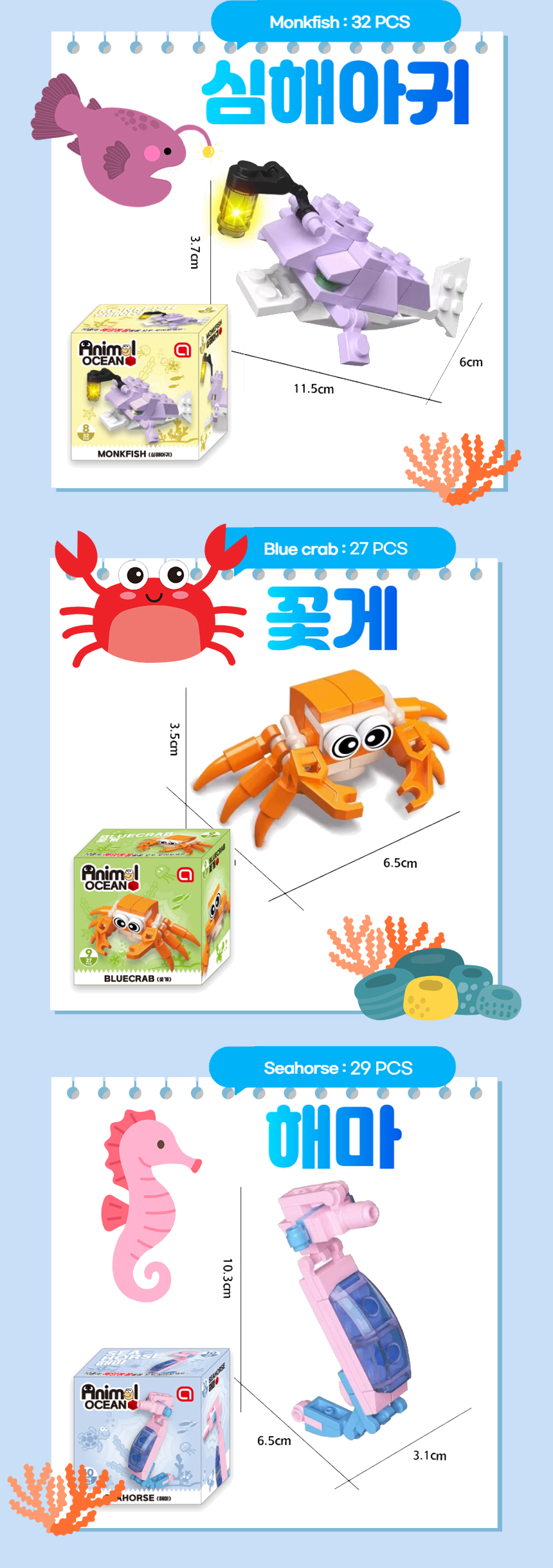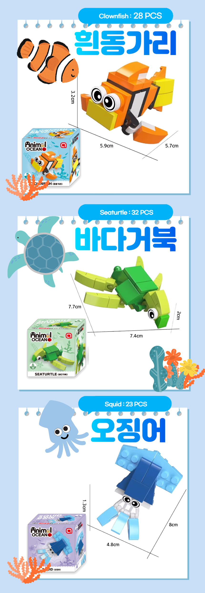 애니멀 오션 블럭 해양생물10종 중 랜덤1개 미니블록 단체선물
