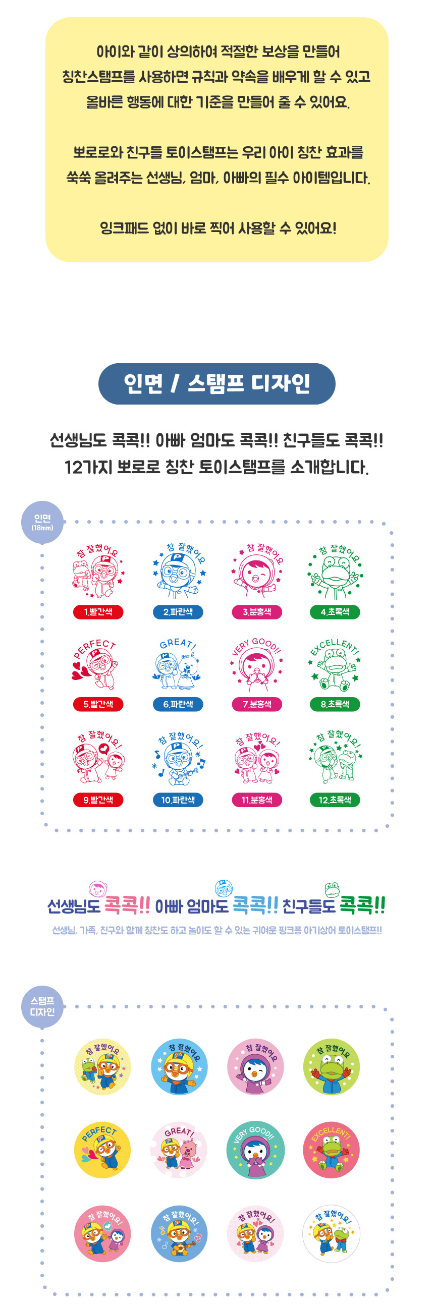 뽀로로 토이 스탬프 피규어 칭찬 도장 참잘했어요 크롱 캐릭터 어린이