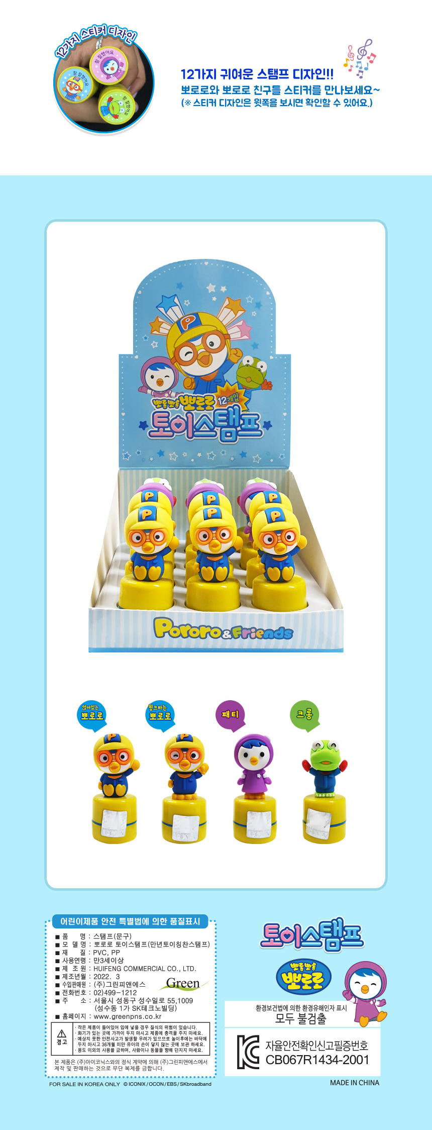 > 뽀로로 토이 스탬프 피규어 칭찬 도장 참잘했어요 크롱 캐릭터 어린이