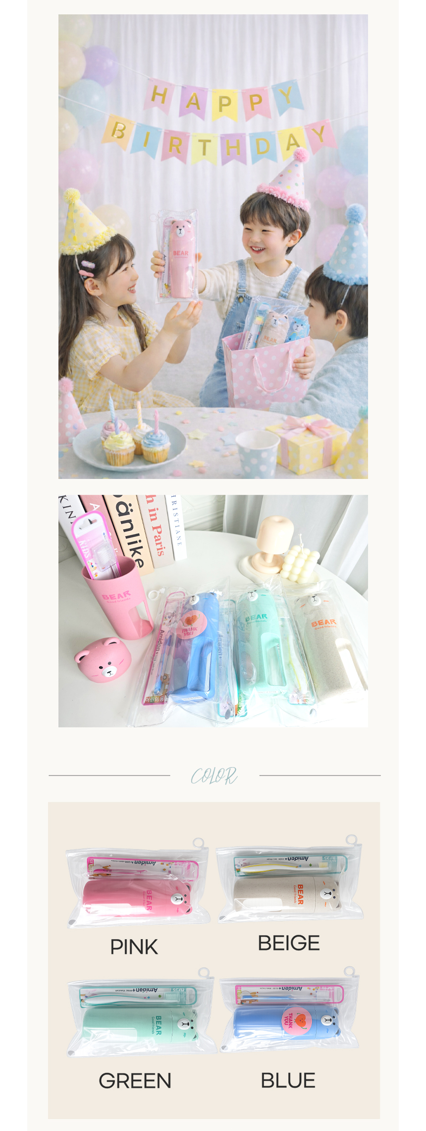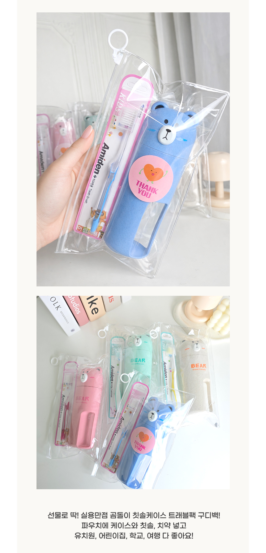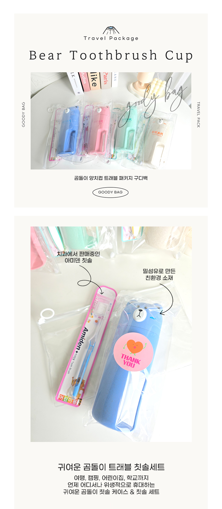 [구디백] 곰돌이 양치컵 트래블팩 칫솔세트 어린이집 영어 유치원 답례품 단체선물 휴대용
