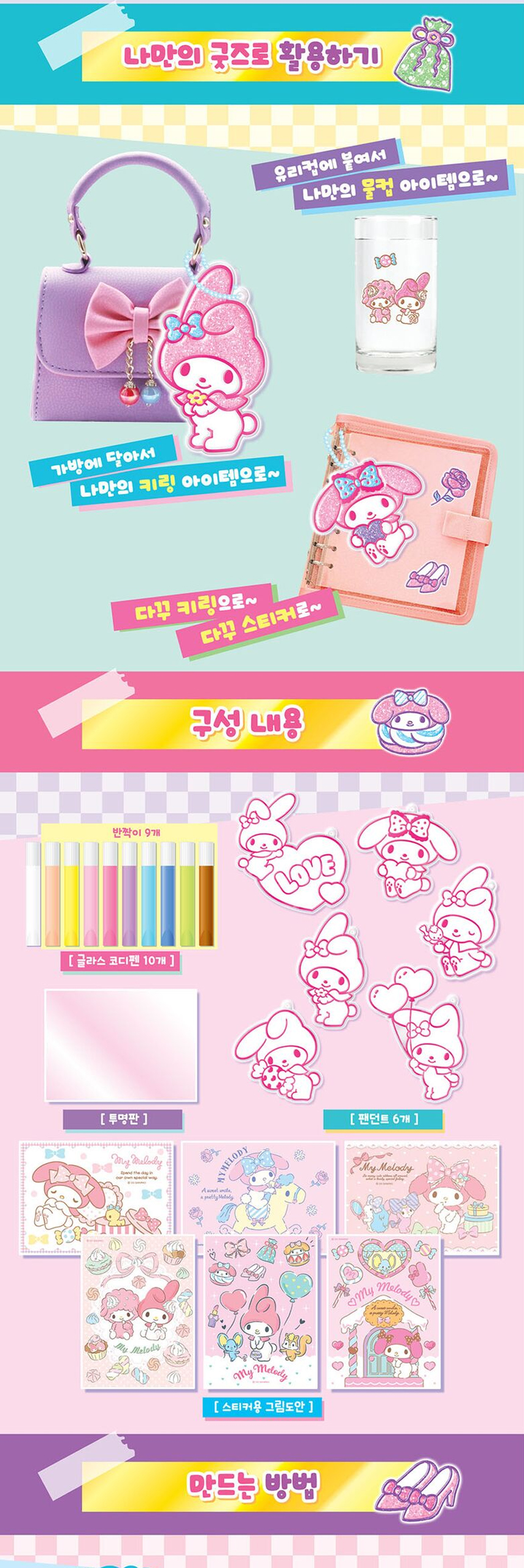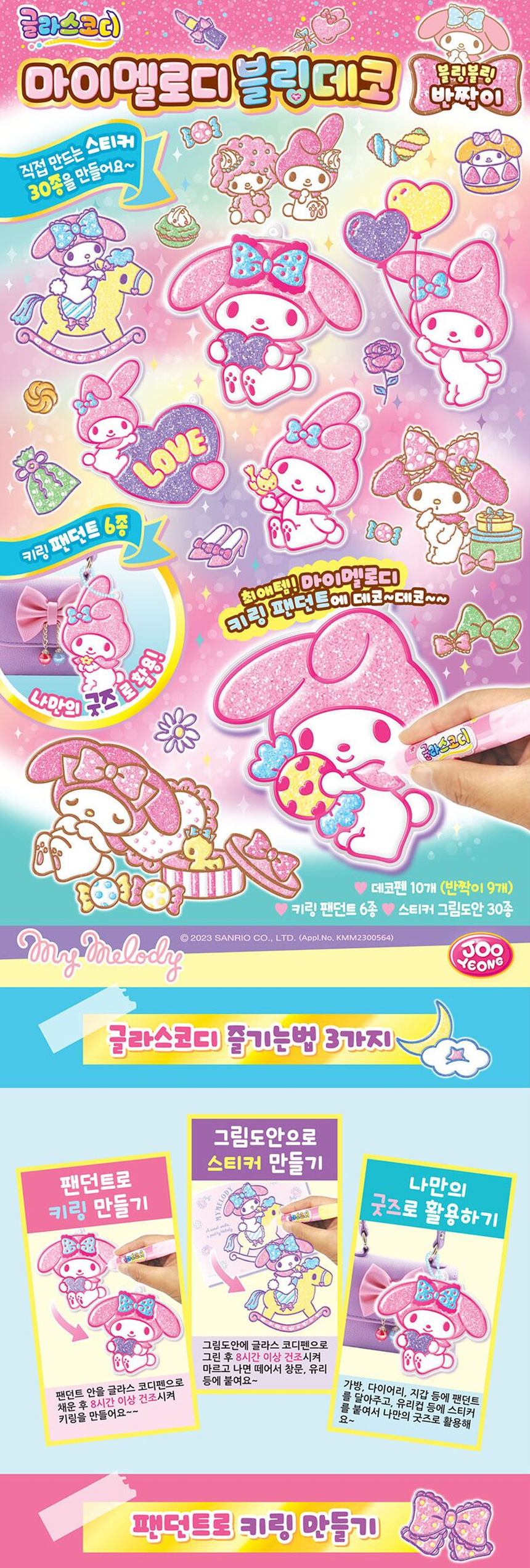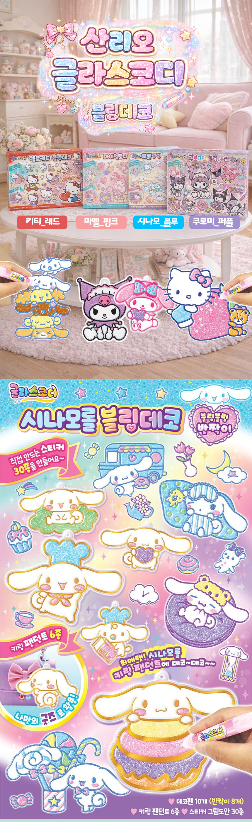 > 산리오 글라스코디 블링데코 만들기 색칠 놀이 스티커 키링 시나모롤 쿠로미 키티