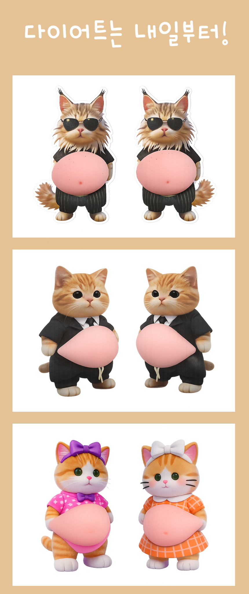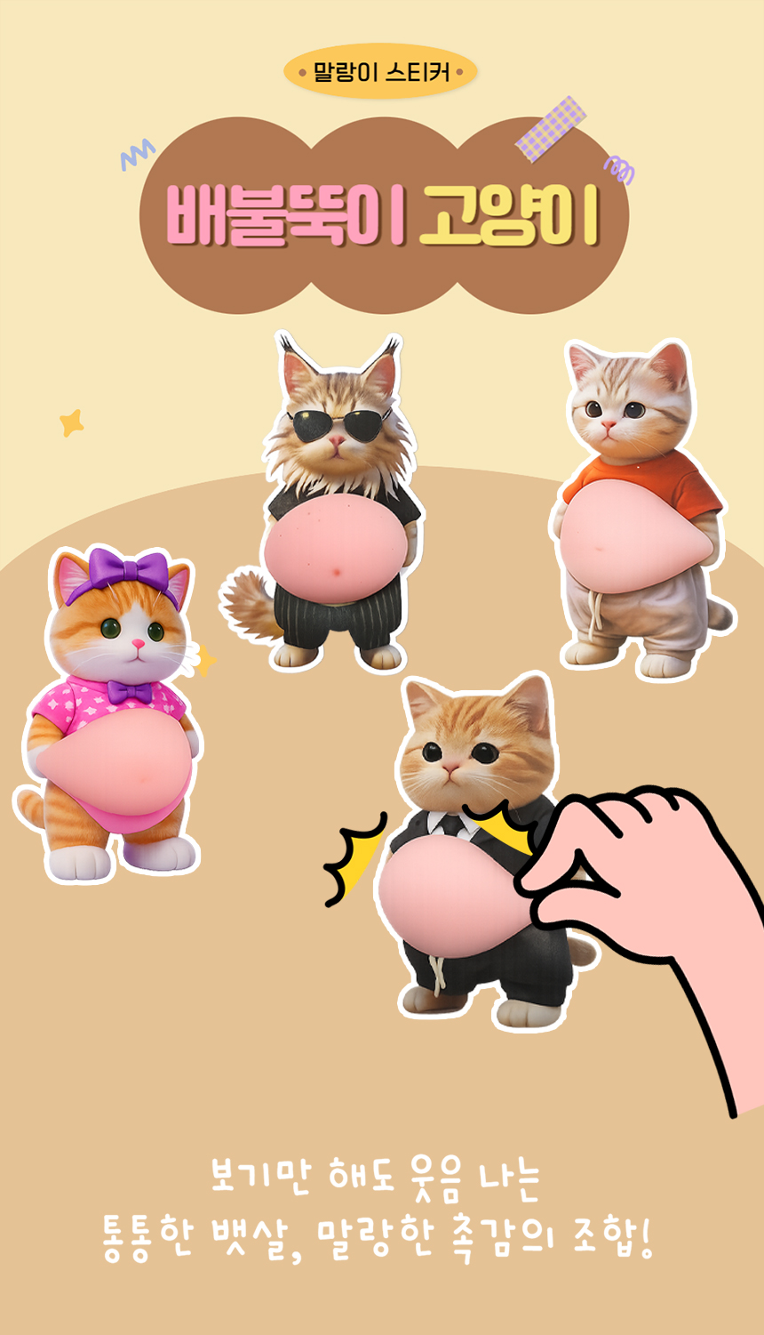 배불뚝이 고양이 말랑이 스티커 폰꾸미기 입체 문콕방지 도어 가드 실리콘 보호
