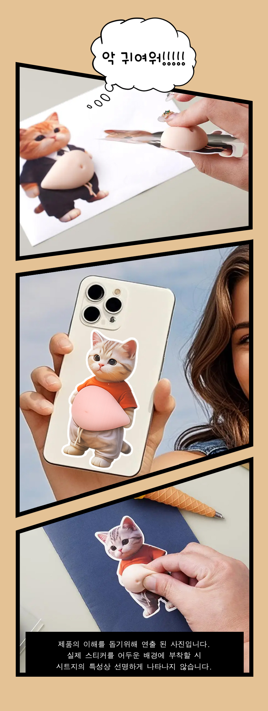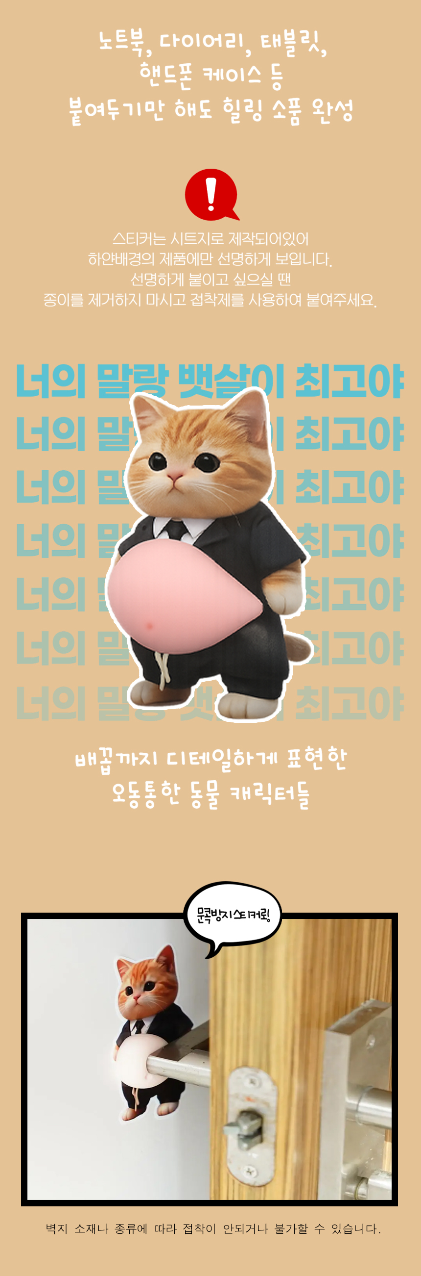 > 배불뚝이 고양이 말랑이 스티커 폰꾸미기 입체 문콕방지 도어 가드 실리콘 보호